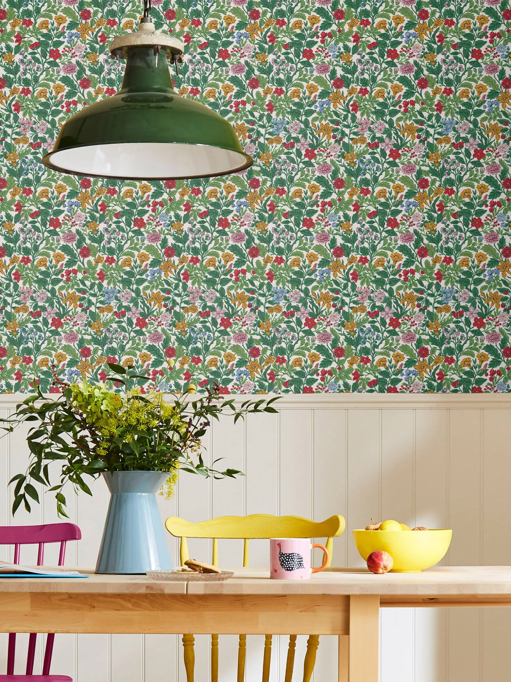 Best Joules Arts & Crafts Floral 10M Wallpaper Rainbow