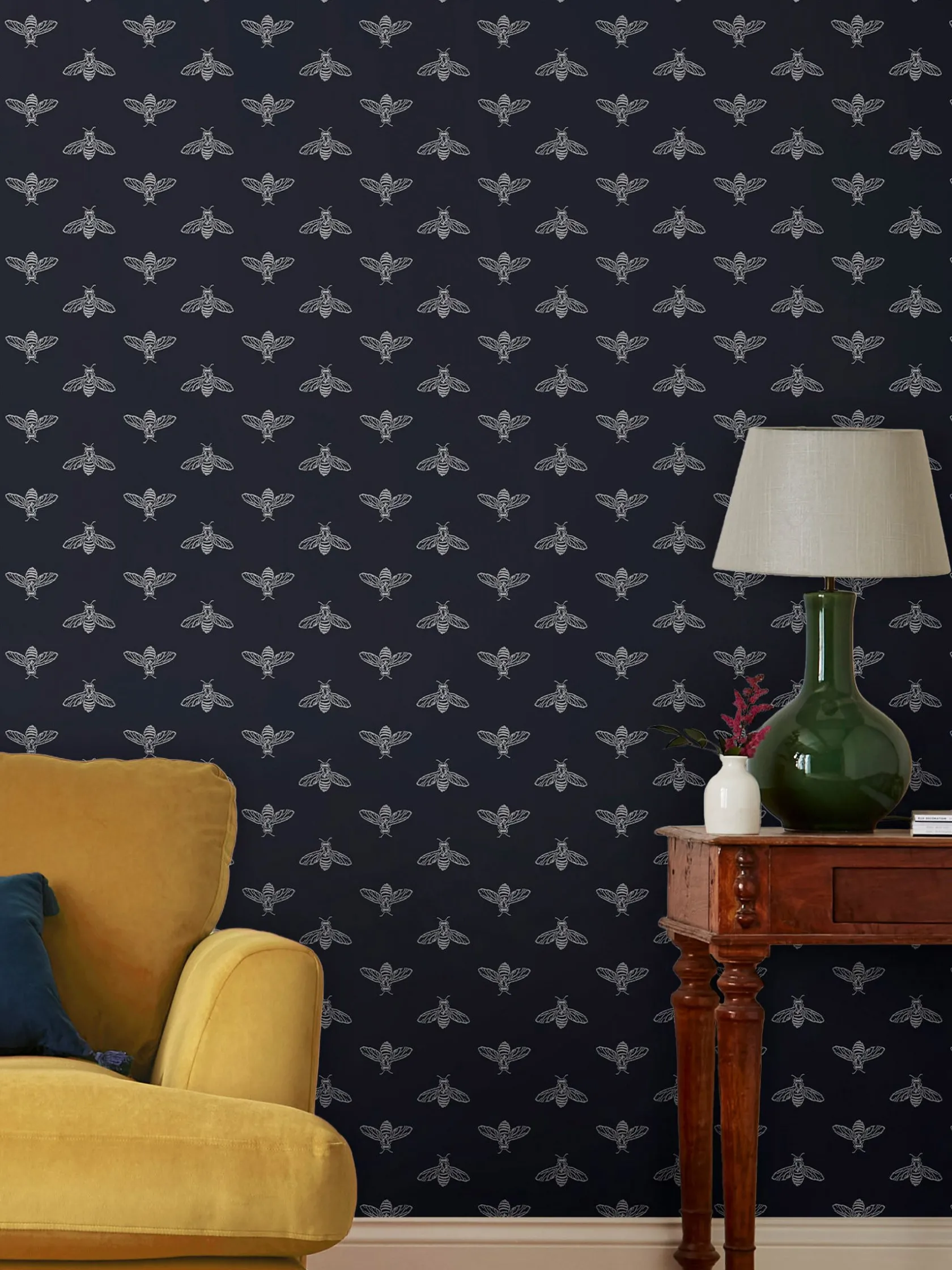Best Joules French Navy Block Print Bee 10M Wallpaper FrenchNavy