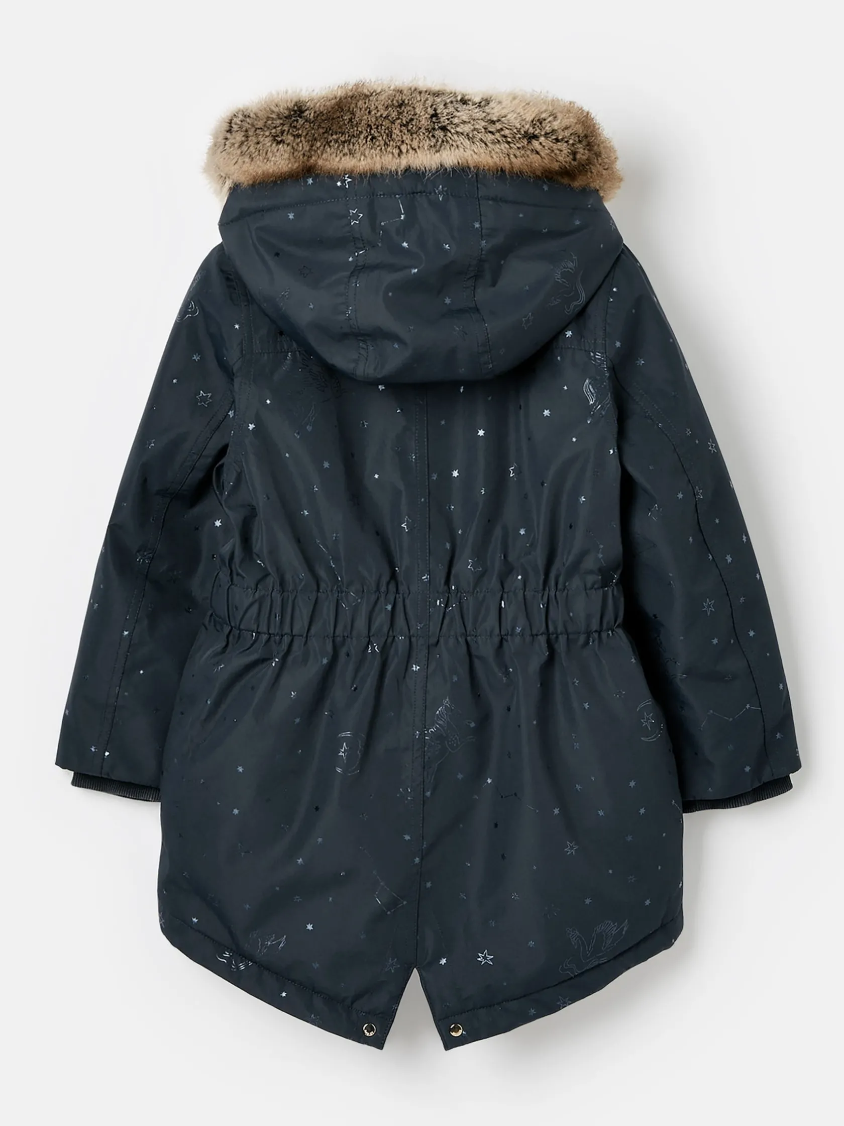 If you’re looking for a coat for her that you can count on season after season, our Alix parka has everything you need. It’s fully waterproof with fully taped seams, and has a borg fleece lined hood with a removable faux fur trim for extra cosyness, fleece lined pockets and an elasticated waist for a close, snug fit. She’ll love the contrasting quilted lining, eye-catching foiled print and hem tape details too! Parka style coat. Zip and popper fastening. Fixed elasticated waist. Borg fleece lined hood with removable faux fur trim. Fishtail hem. Fleece lined pockets with popper fastening. Storm cuffs. Quilted lining. Foiled print. High shine trims.