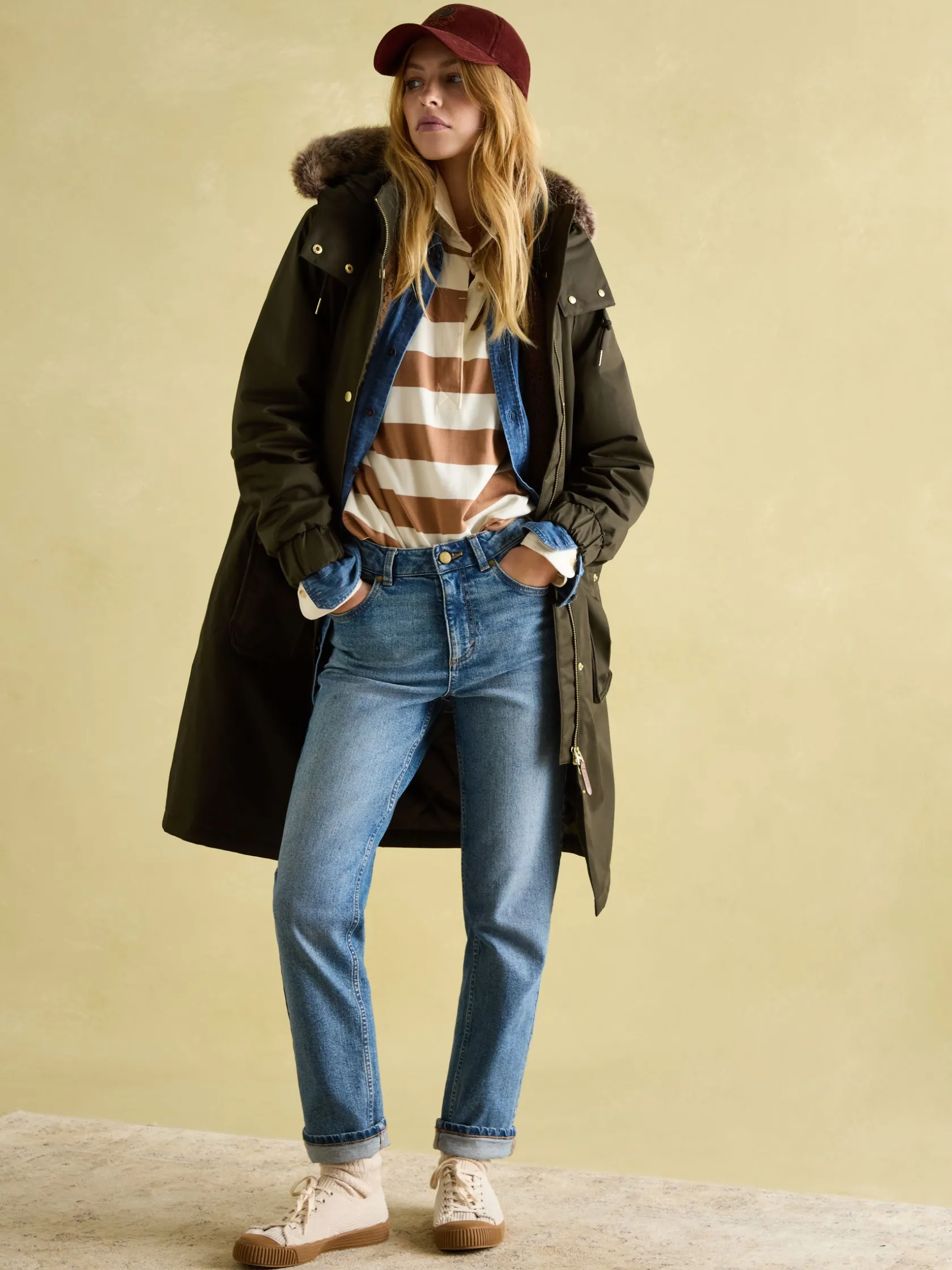 With the Harpsden Cosy you’ll never complain about the cold and rain again. Maybe. This piece of outerwear has been designed to encourage you to embrace the British weather and the (many) cold and rainy days that come with in style. Waterproof with taped seams and a longline shape, it provides superior protection from light drizzles to downright downpours. The hood with adjustable toggles adds another shield to the elements but can be detached if the weather is on your side. As well as keeping you dry, it’ll make you feel great too with a curved hem, adjustable waist with external toggles and a cosy half fleece lining. Other practical features include a storm flap to the back, dual entry bellow pockets, deep side vents with popper fastenings for freer movement and elasticated cuffs.nnWaterproofnHalf-fleece liningnFully taped seamsnDual entry bellow pocketsnDetachable hood with adjustersnCurved hem with popper ventsnAdjustable waist with external togglesnElasticated cuffsnStorm flap to the back
