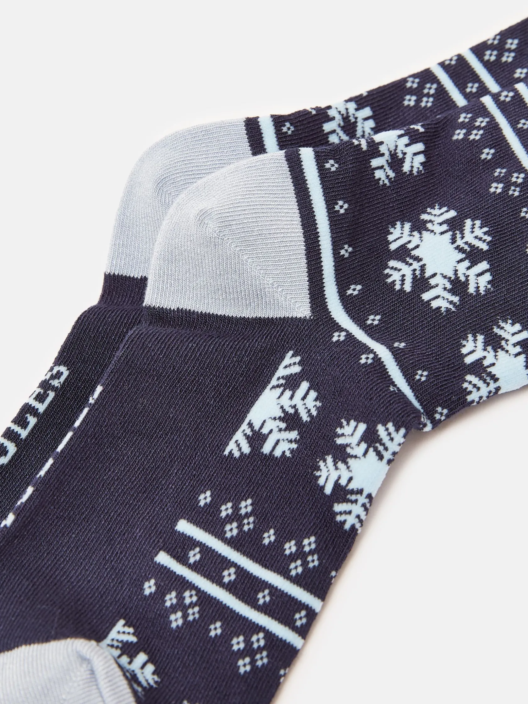 Whoever said socks make a boring gift, obviously weren’t wearing the right ones. Our Everyday socks come in a pack of two and are designed to bring joy to your sock drawer. They’re made from a supremely soft viscose blend that feels as good as it looks and each pack has two different designs to choose from. The ribbed cuffs increase the comfort and stops them from falling down. With a whole line-up of designs to stock up on, you’re truly spoilt for choice. Viscose blend. Pack of two. Ribbed cuffs. Two different designs in a pack. Joules branding to the bottom.