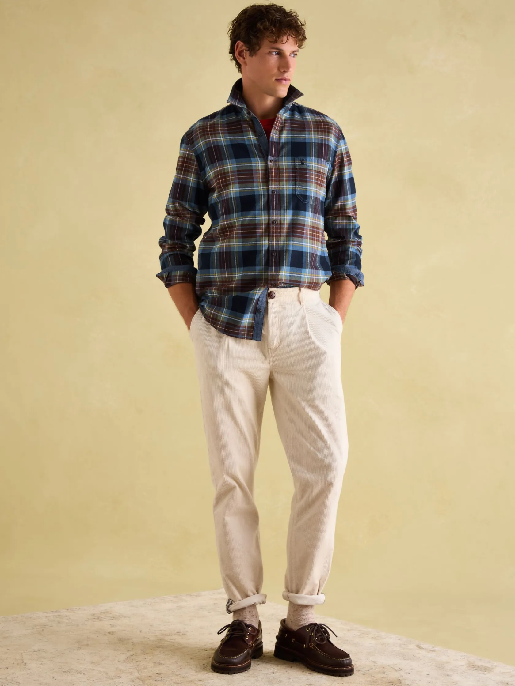 A man’s wardrobe isn’t complete without a collection of easy-going checked shirts to hand. With the Buchanan, both smart and casual boxes are ticked. Wear it unbuttoned over a T-Shirt and jeans for casual days, or buttoned up with chinos for more refined look. This all-rounder has a soft brushed fabric and an unfussy, classic fit. Other functional details include a button down fastening, button cuffs and a patch pocket to the chest. The checked pattern features a deeper colour palette for the cooler months and is finished with chambray trims. Woven. Classic fit. Long sleeves. Button fastening. Button cuffs. Collar. Chambray trims. Hanging loop to the back. Checked.