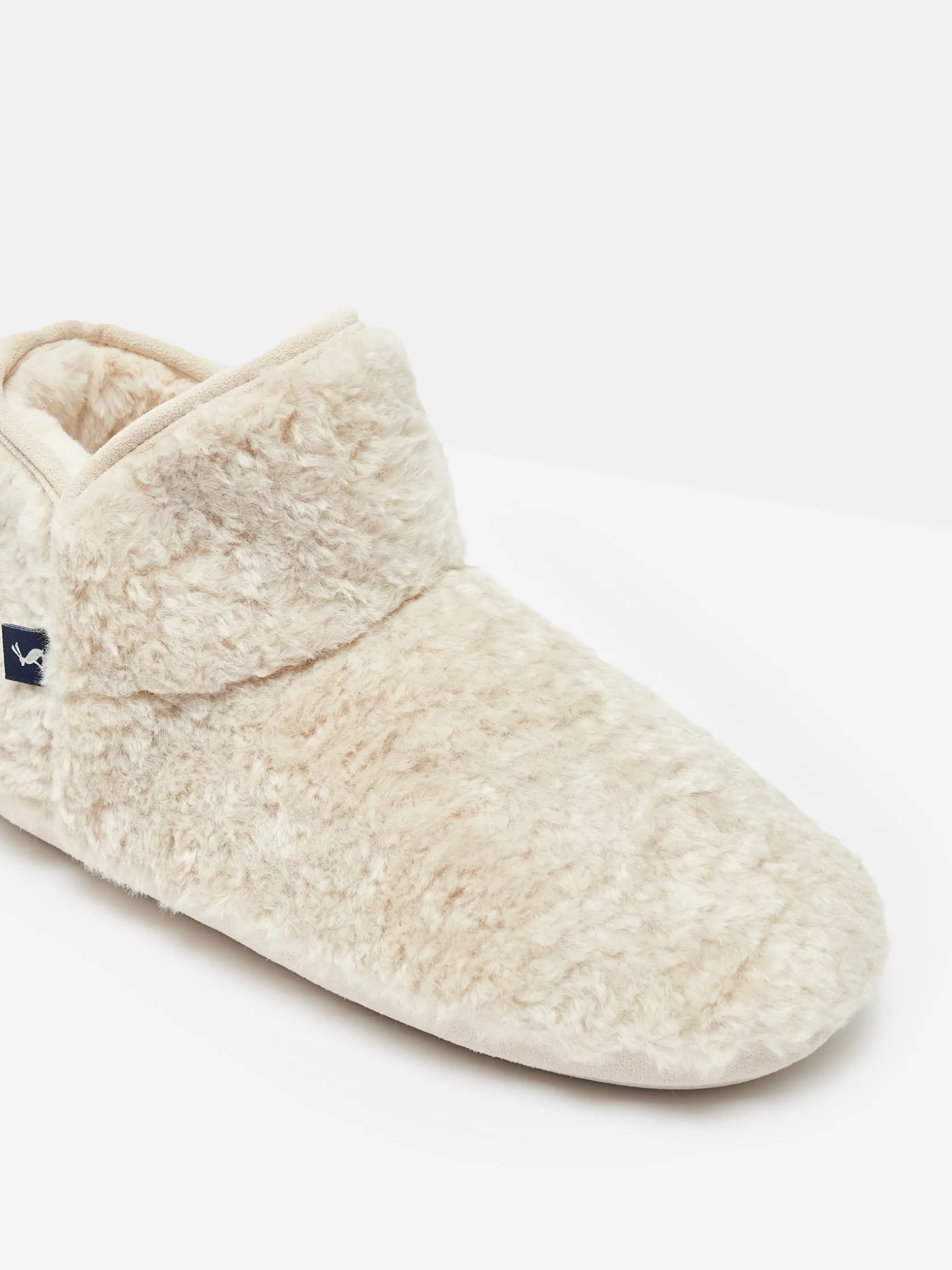 These are the kind of slippers that if you could wear them everywhere, you would. A much-loved style brought back for the cold weather season, the Cabin slipper boots are a true treat for your feet. They’re made from cloud-like faux fur on the inside and out and feature a textured outsole to provide better grip on the ground. Finished with a Joules branded tab to the heel and in a colour that will complement a range of our pyjama sets. Slipper boots. Faux fur outer and lining. Textured outsole. Joules branded tab to the heel.