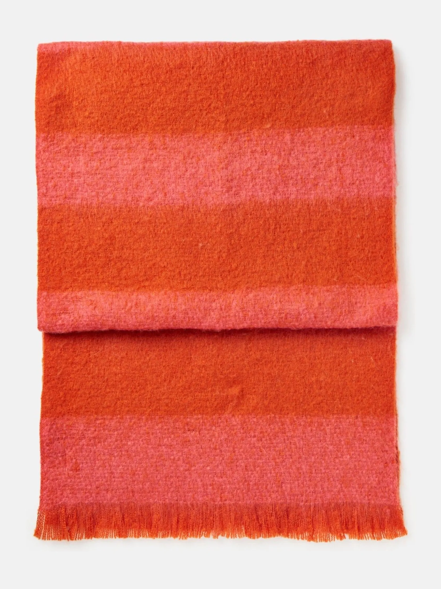 When the time comes to brace for the cold, the Fenella scarf will be the thing you reach for over and over again. Its oversized blanket style welcomes heaps of warmth to your outfits, while the two-toned striped design will add an abundance of style. Finished with frayed edges and a Joules branded tab. Blanket-style scarf. Oversized. Super soft. Frayed edges. Two toned stripe design. Joules branded tab.