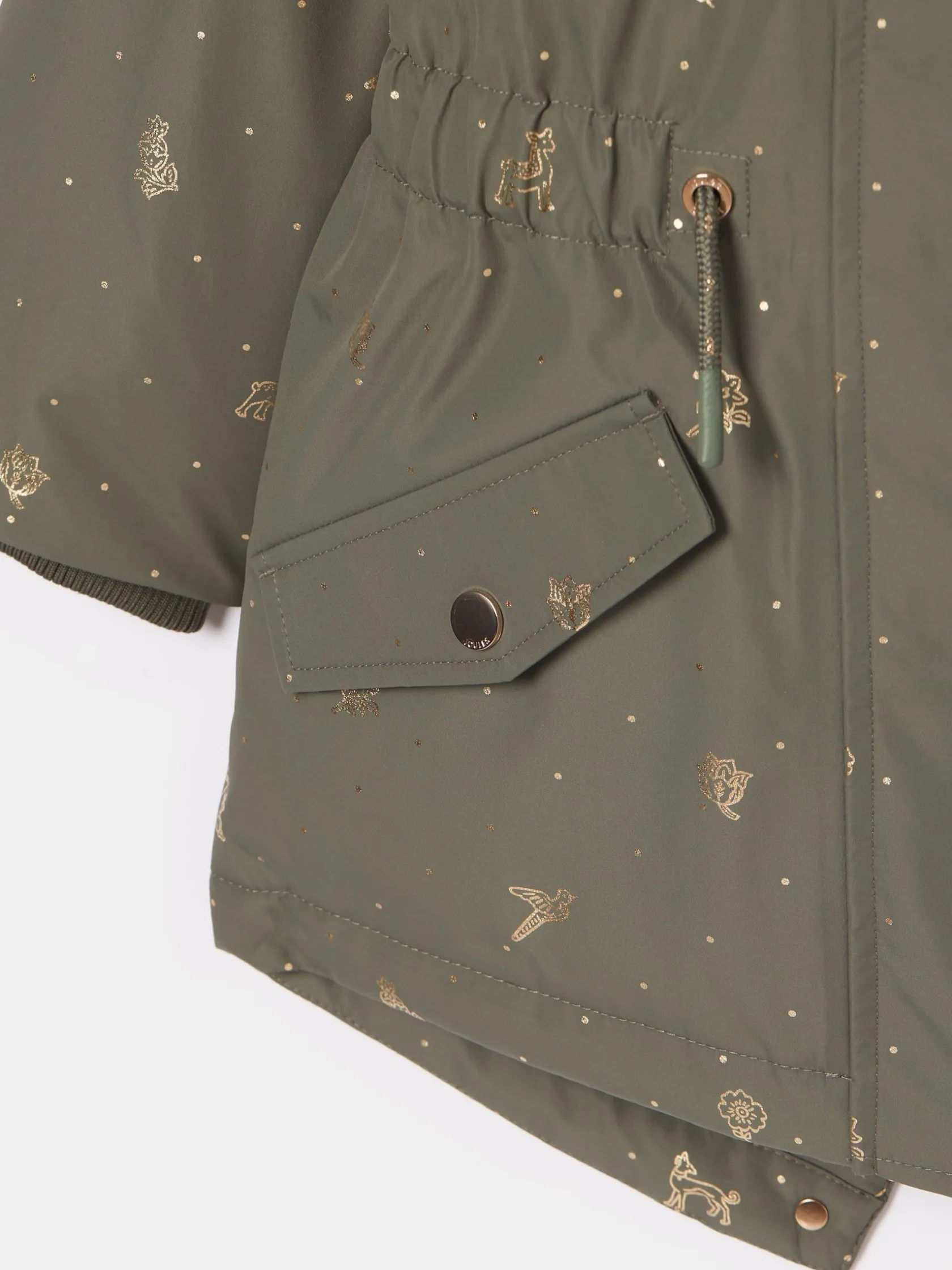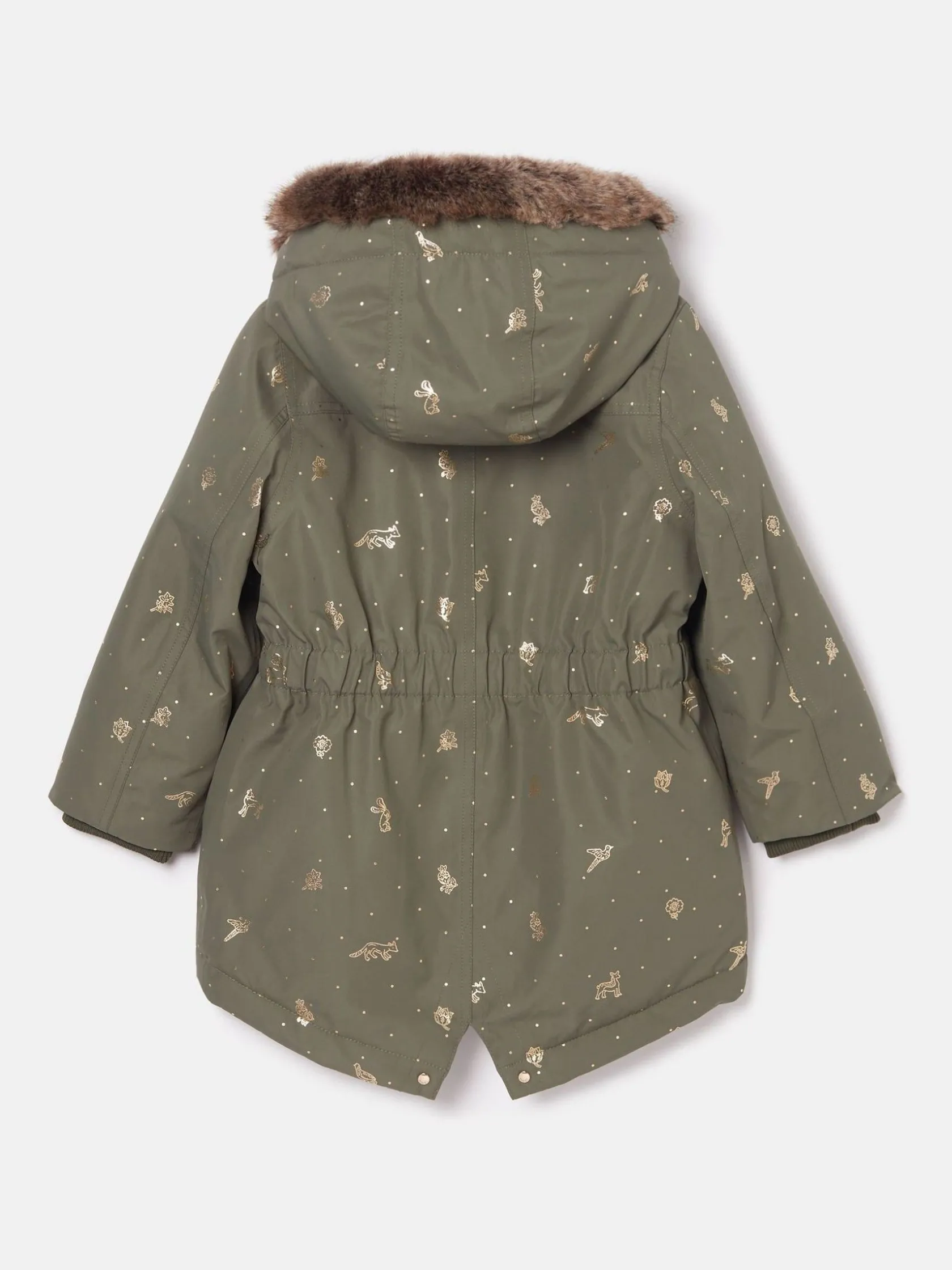 Clearance Joules Girls’ Alix Khaki Green Printed Waterproof Parka Coat KhakiGreen