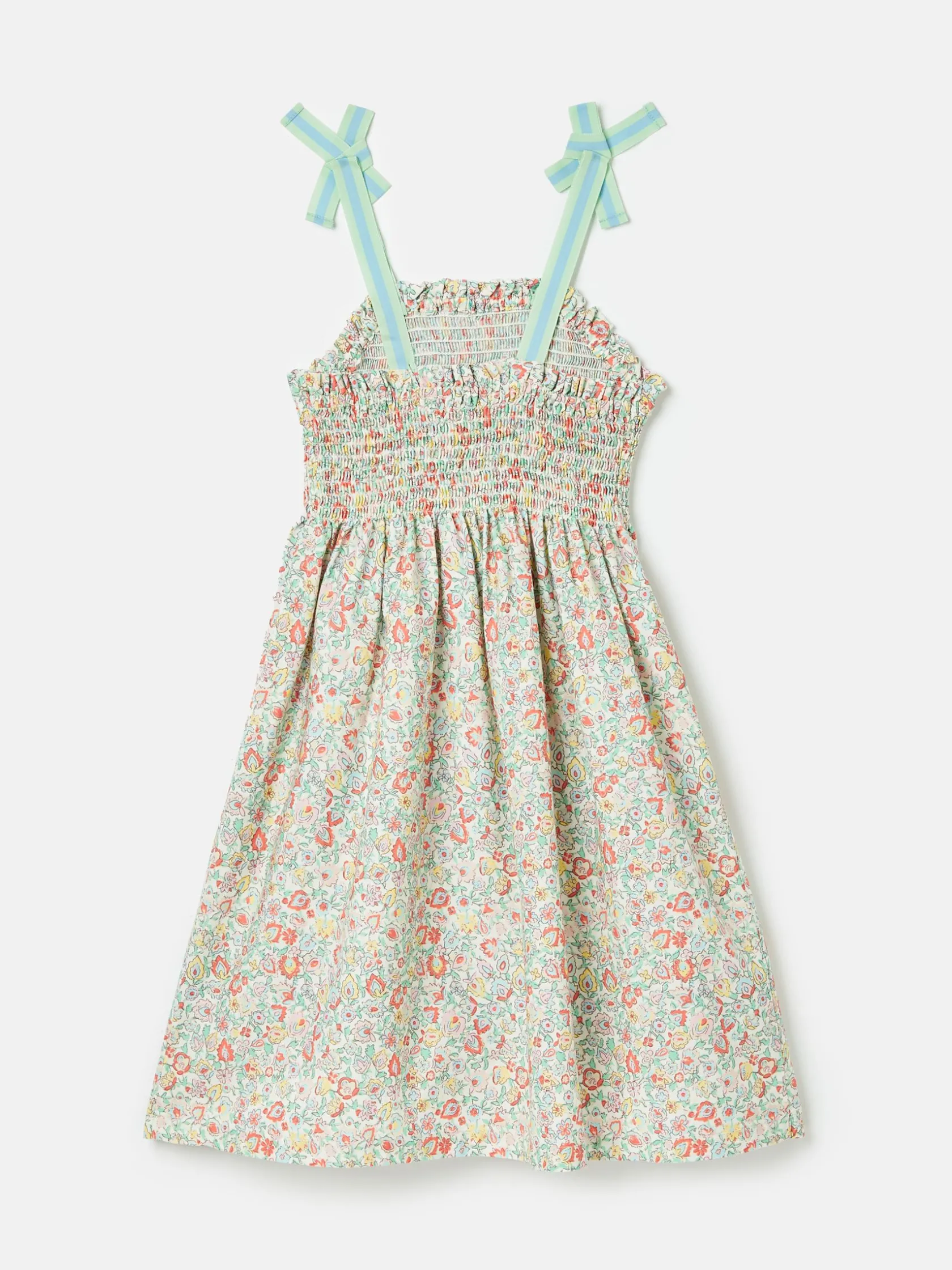 Warm weather calls for sundresses, and this one, as the name suggests is pretty as a picture! Whether your little one has a host of parties to attend, or you’re looking for easy-to-pack pieces for a summer holiday, this one ticks all the boxes. It’s made from a light and breathable cotton fabric, has an a-line shape and a gathered waist for fullness. The shirred front and back bodice is curved with a frilled trim and the fixed ribbon straps are in a contrasting colour for an oh-so-pretty finish. Cotton. A-line shape. Below the knee length. Shirred front and back bodice with frill trim. Contrasting colour ribbon straps. Gathered waist.