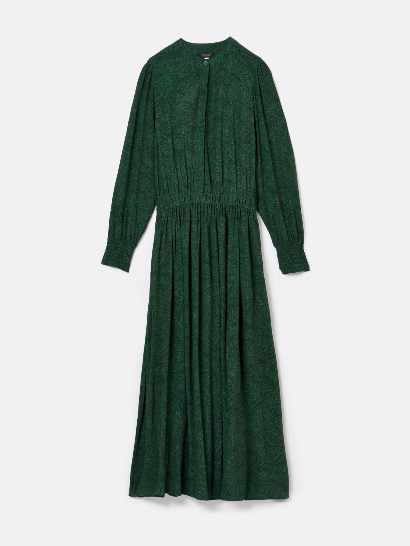 The epitome of effortless elegance, the Elena dress will make a welcome addition to your autumn and winter wardrobe. Feminine details such as a shirred waistband and cuffs, concealed button placket and gathered shoulders will make it your favourite piece to wear. It falls to a versatile maxi length, and has a collarless design making it easy to layer under knitwear to increase your outfitting options. The hand-drawn print will receive many compliments, and as it’s unique-to-Joules, you won’t find it anywhere else. Pair with pumps on the journey from summer into autumn, then switch it up to leather boots during winter. Viscose. Maxi length. Long sleeves with gathered shoulders. Shirred cuffs. Collarless. Concealed button placket with single exposed button at the top. Gathered waist with shirred detailing.