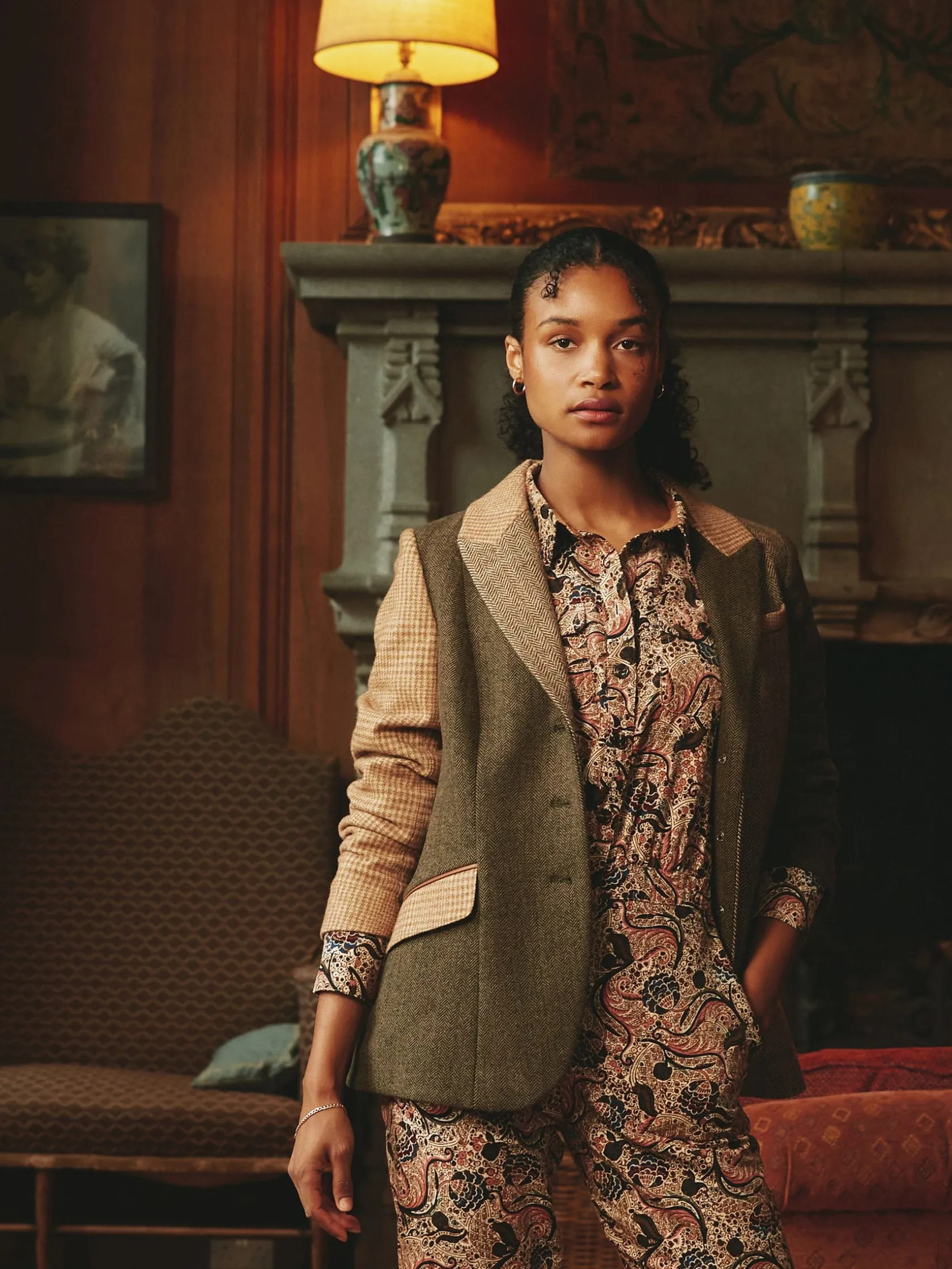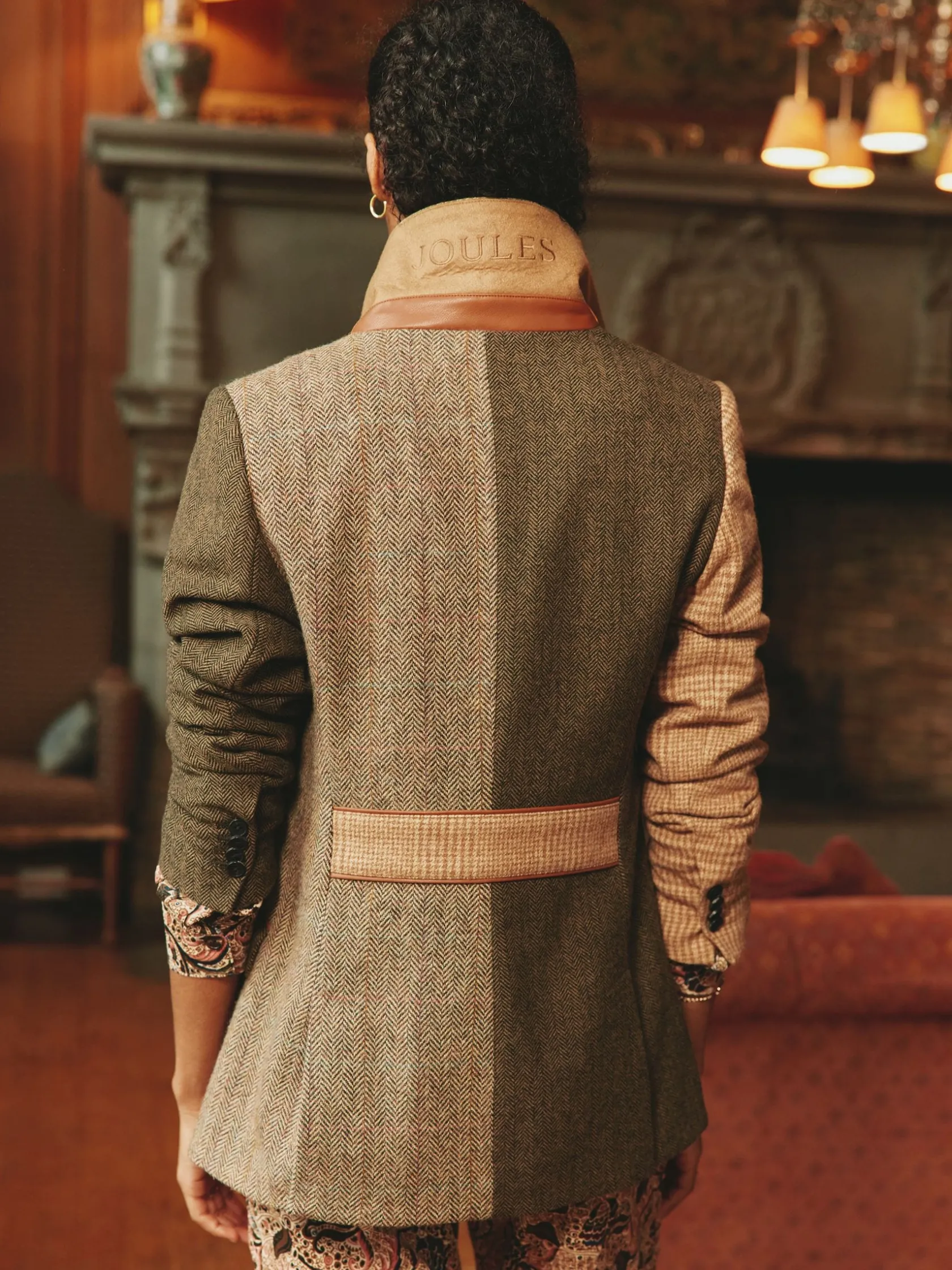 We love tweed blazers. They’re charming and traditional. But we also love giving old favourites a twist. This new tweed blazer features wool-blend hotchpotch herringbone tweed. A clash of colours that will make it stand out, both in town and in the country. It’s everything you could want from a tweed jacket and more. It’s in a classic shape that’s flattering and will offer easy movement, and has a button fastening along with external and a single internal pocket. It’s sure to be a talking point and will last for years to come. In fact, it can be passed down from generation to generation. Your daughter probably has her eye on it already. Hands off!nnHotch potch tweednButton fasteningnPocketsnFelt undercollar with Joules embroiderynHanging loop