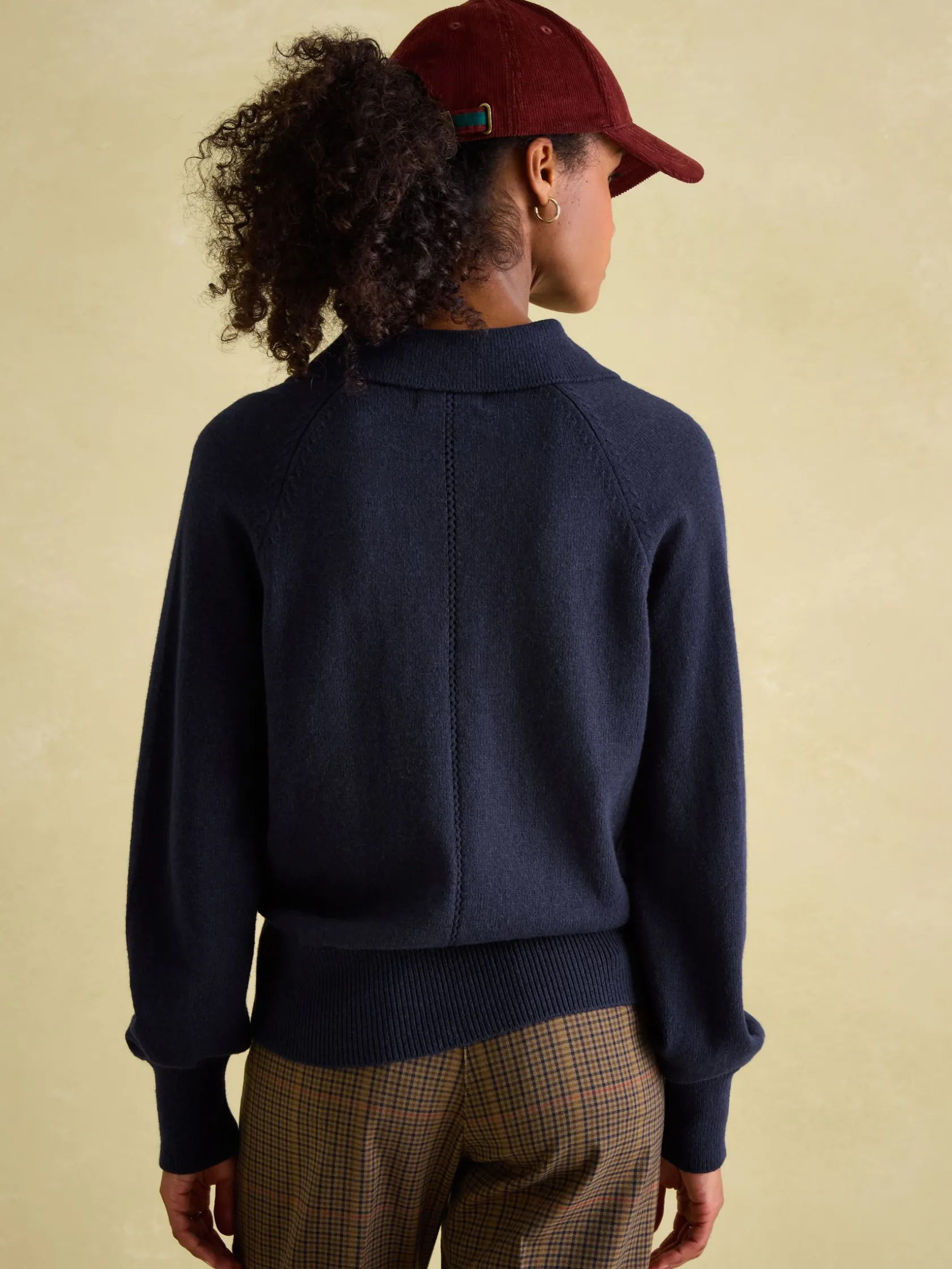 This is a knit we can’t get enough of. Crafted from a soft cotton blend and with a neat, boxy fit, it’s a layer that will look (and feel) good in any season and any weekend plans. The open collar design gives it a relaxed and contemporary look, while the pointelle stitch detailing to the shoulders and back elevates it beyond the ordinary. It’s finished with a ribbed hem and cuffs. Cotton blend. Soft knit. Neat, boxy fit. Raglan sleeves. Slight blouson sleeves. Open collar. Ribbed cuff and hem. Pointelle stitch detailing to the front, shoulders and back.