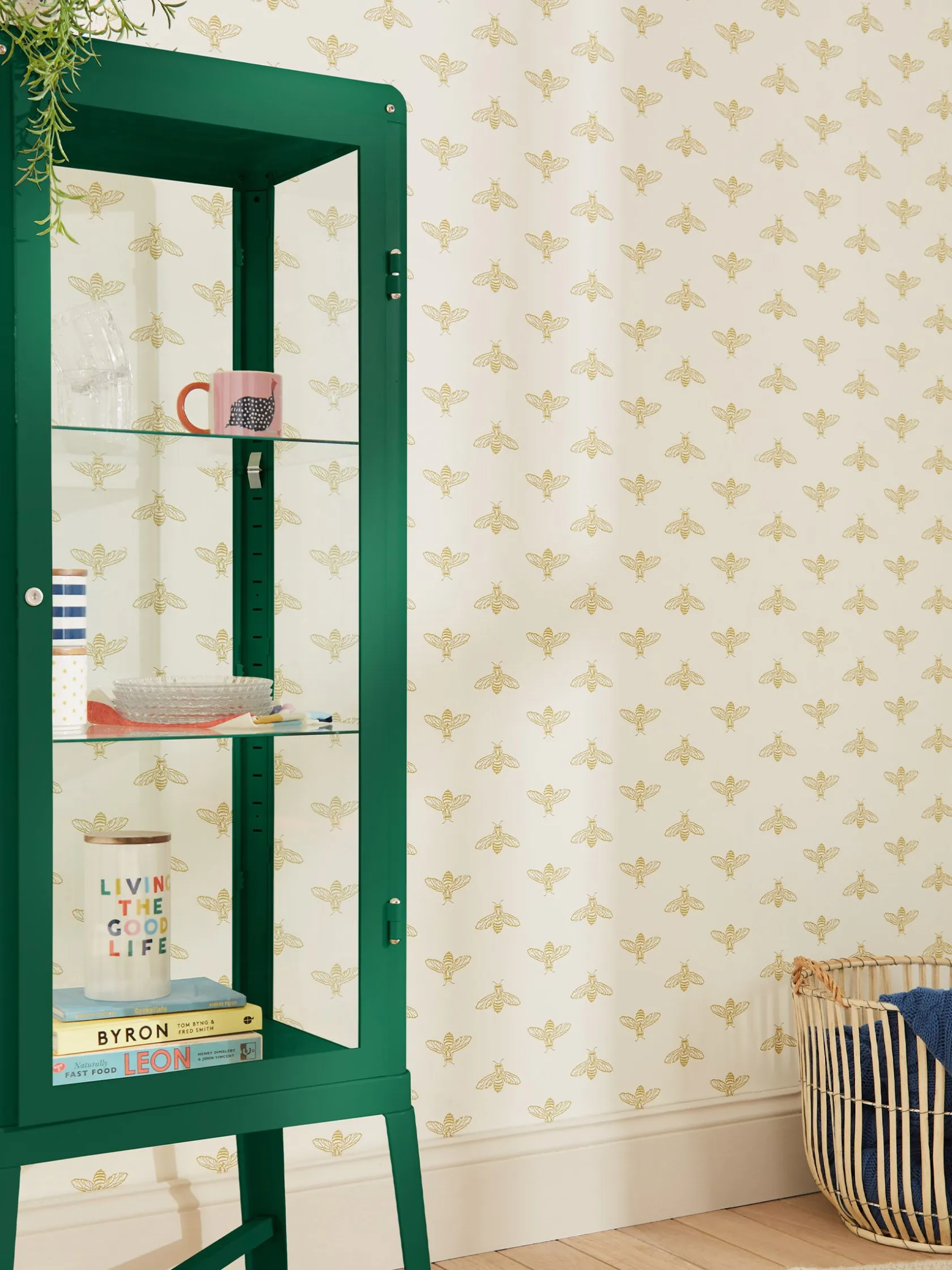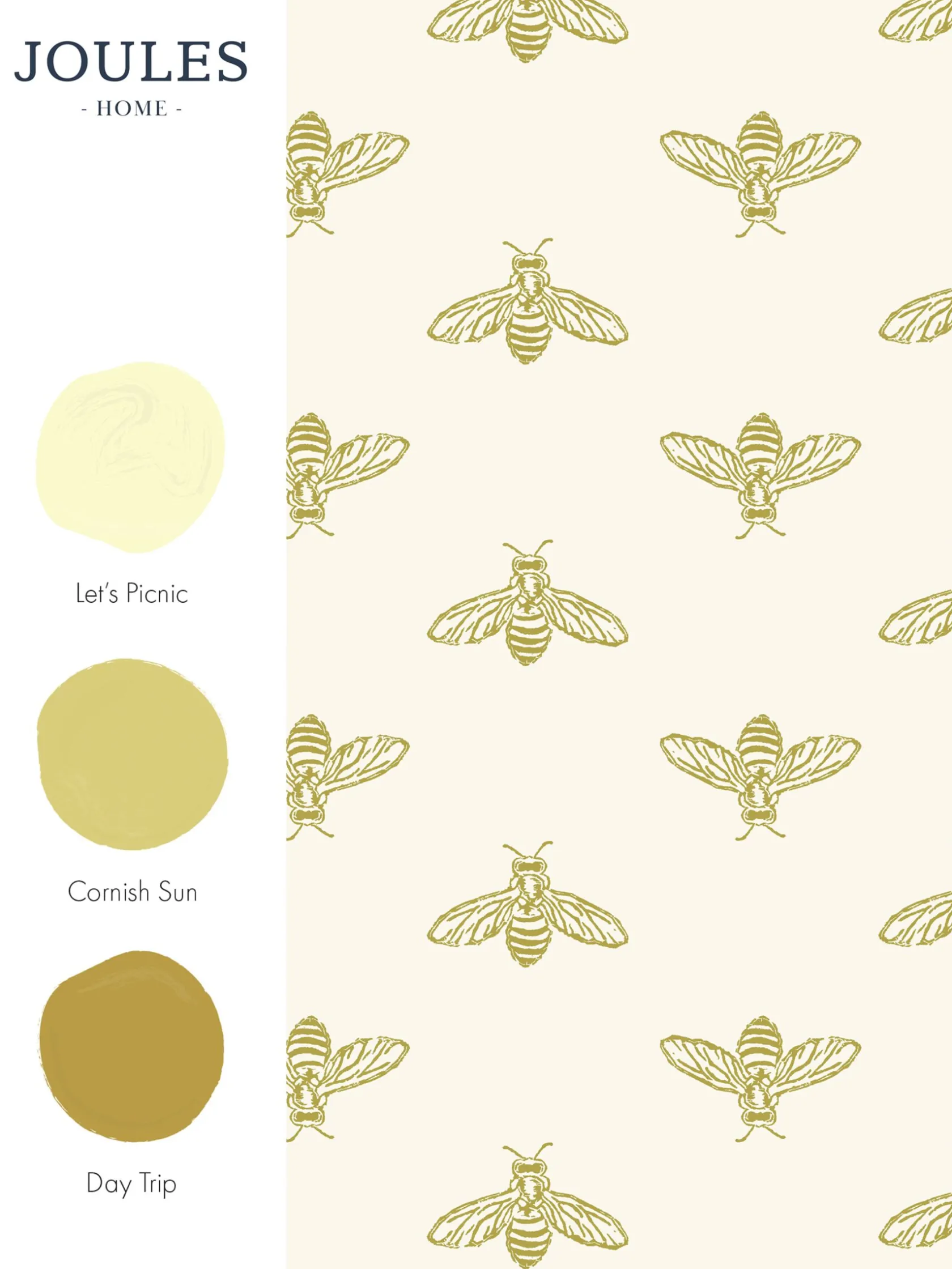 Add a little countryside charm to your home with this block print bee wallpaper. Created in a stunning antique gold colour palette, the block print bee sits perfectly upon a soft white background giving it a sun-filled and fresh feel. Printed on a matt substrate for a contemporary look and feel. This wallpaper is also paste-the-wall, making it easy to hang. Pattern repeat: 57.9cm, Drop Type: Straight.
