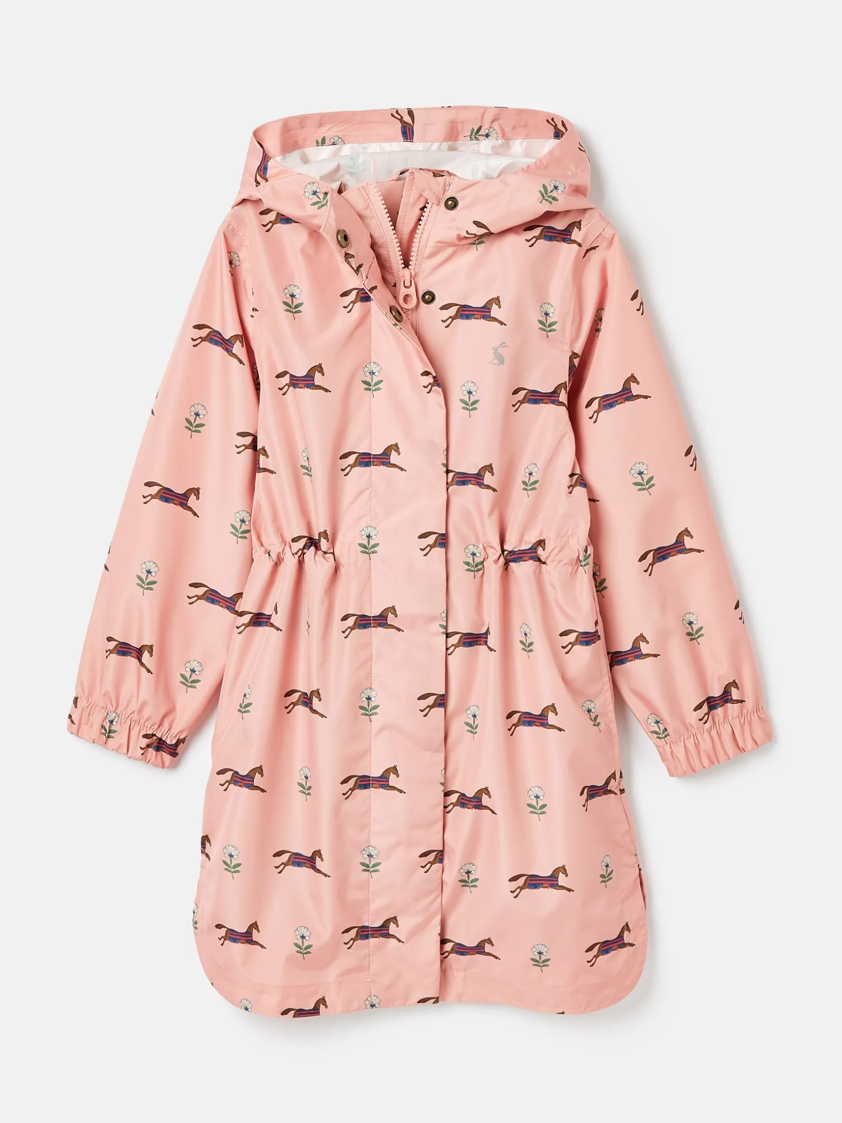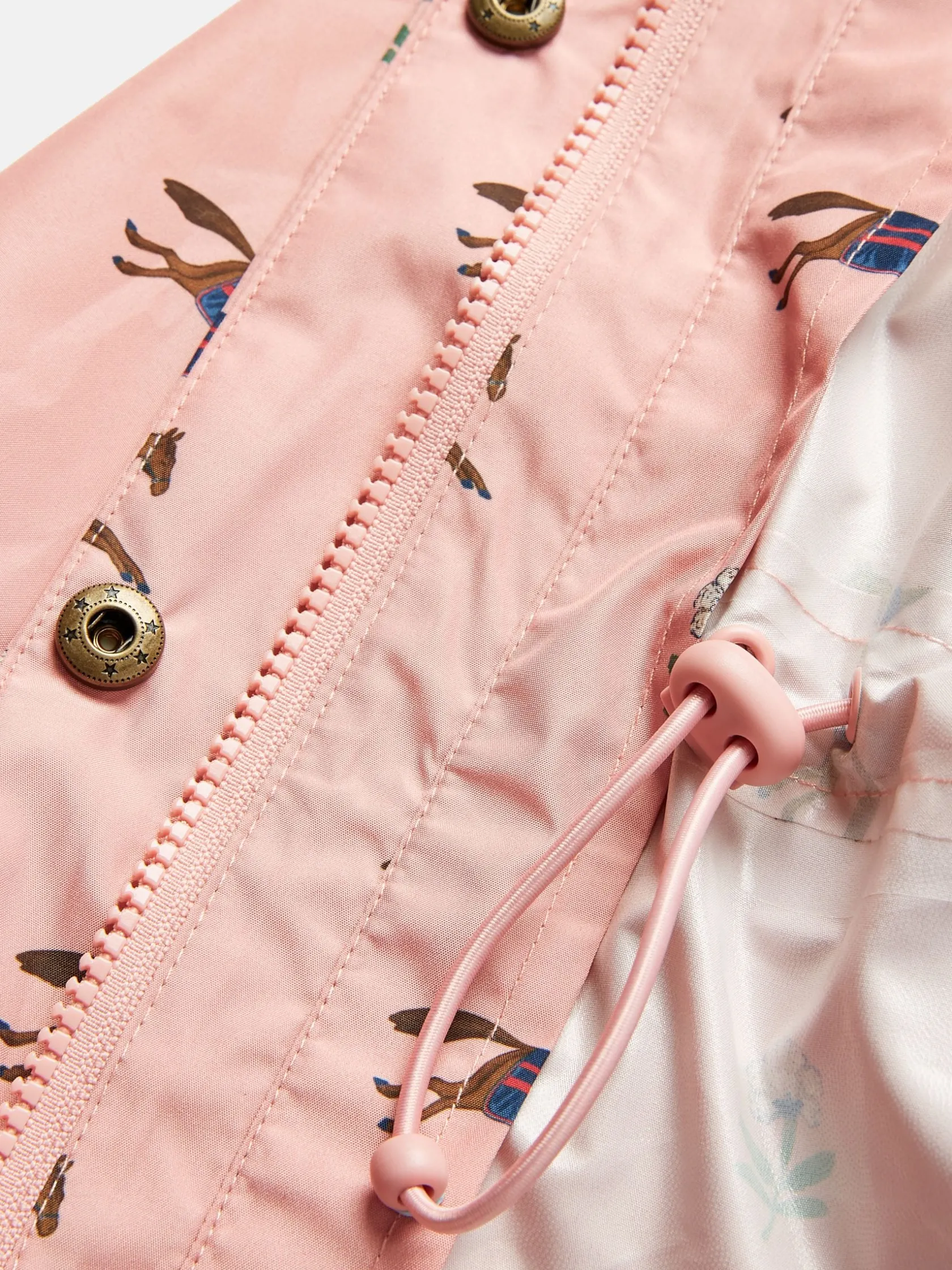 Hot Joules Girls’ Rainford Pink Horse Waterproof Packable Raincoat With Hood PinkHorse