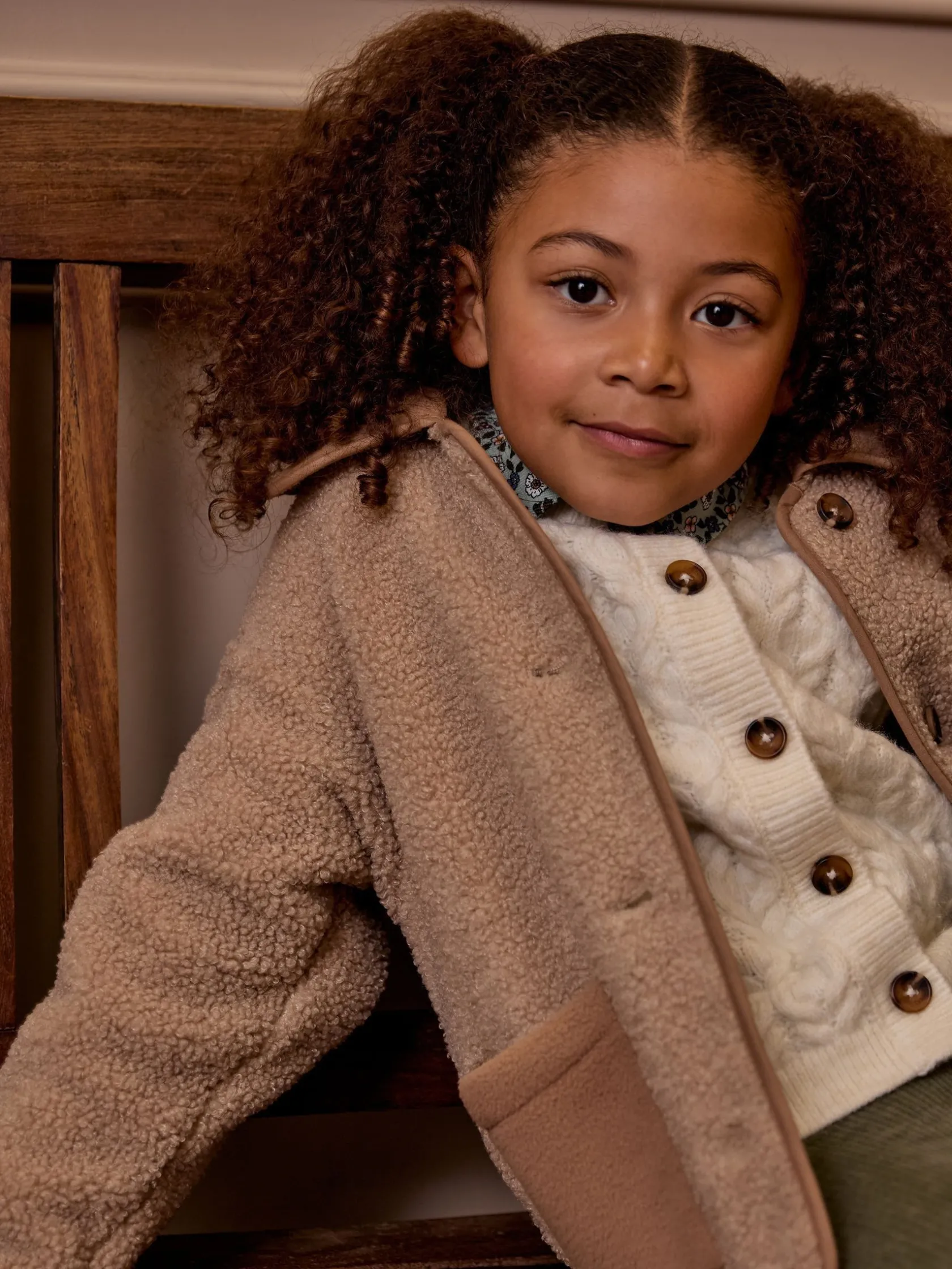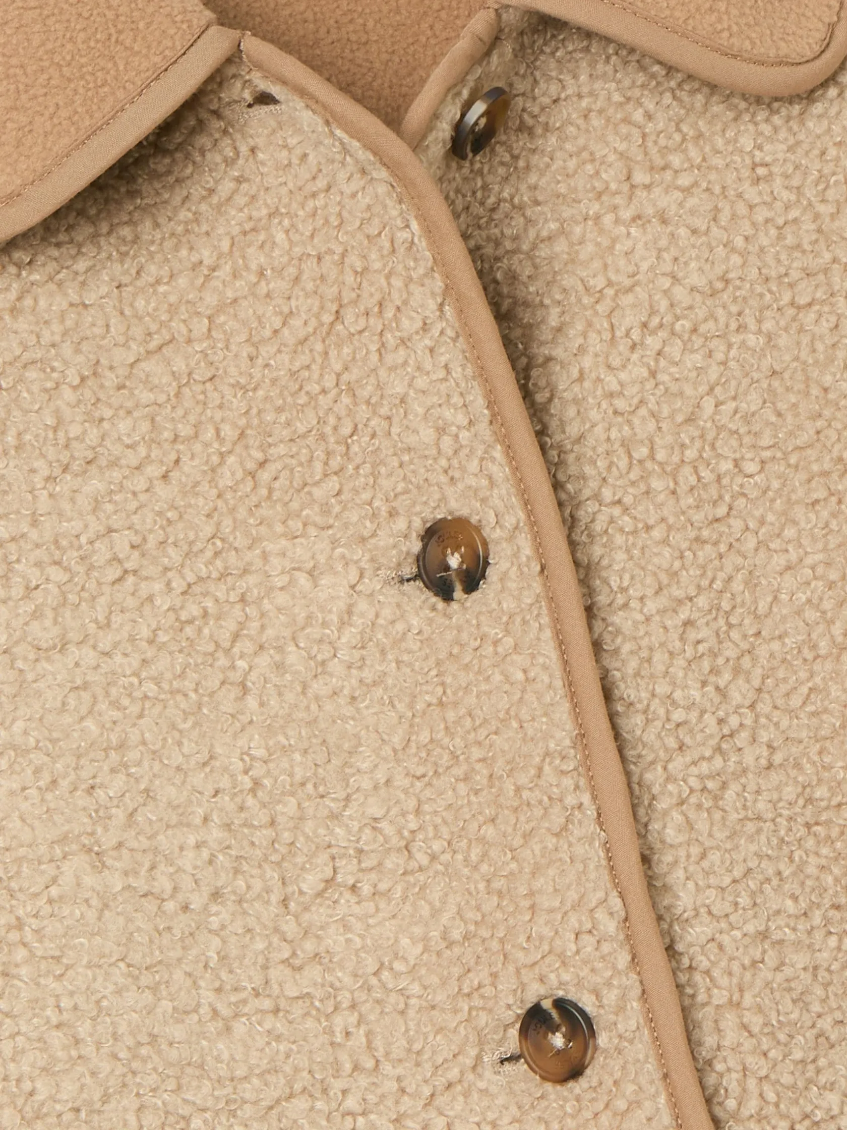 This is the mini version of our women’s Sadie fleece jacket perfect for while your little one still likes to match you. It’s cut to a waist length and comes in a neutral colour that is easy to wear with anything in their wardrobe. The soft, borg fleece outer gives it a plush look, while the polar fleece lining ensures it feels as warm as it looks. The lining fabric is used on the outer too, through the pockets, collar and trims for a touch of contrast. Adding yet more premium appeal is the five faux horn button fastenings to the front. This is a piece they’ll want to wear everywhere. Borg fleece outer. Polar fleece lining. Polar fleece detailing to the pockets, collar and trims. Faux horn button-down fastening. Tonal Joules embroidery to the pocket
