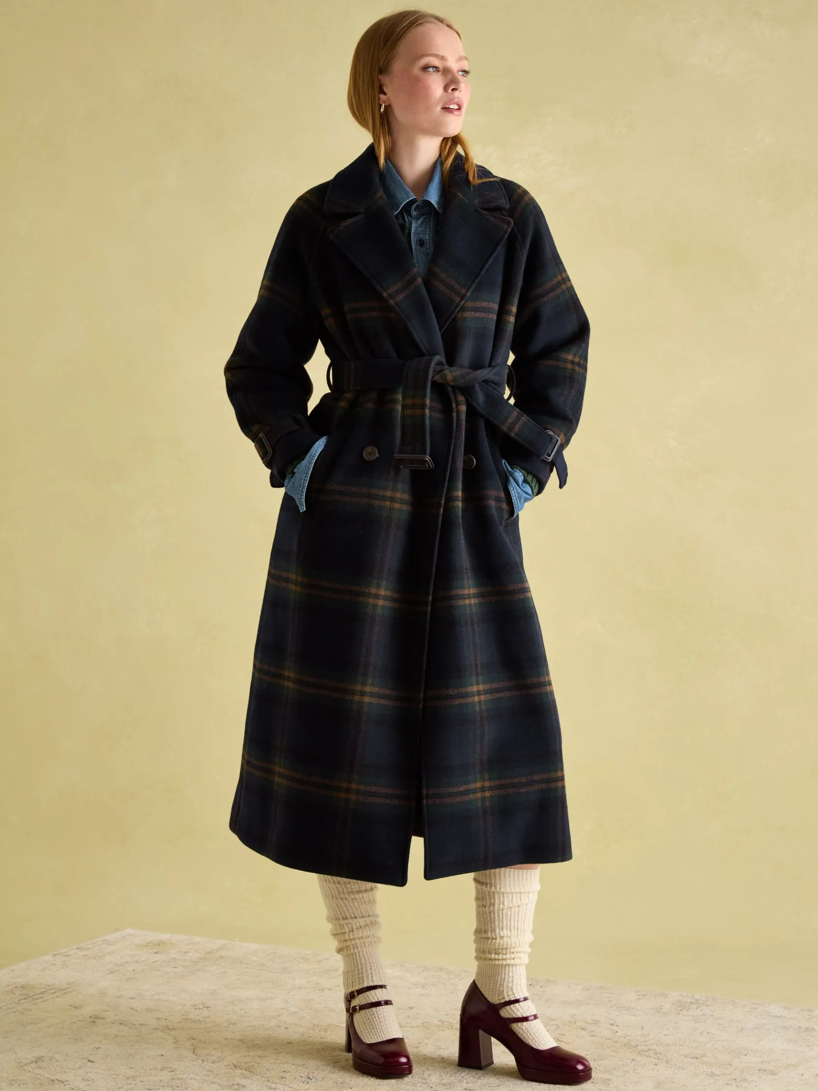With coat season upon us, and likely set to stay for a long while, investing in a piece you’ll never tire of wearing is a wise choice. The Amberley is elegant, sophisticated and crafted from true quality that can be felt through its heavyweight, wool blend fabric and seen through the craftsmanship. Its longline design provides ample coverage from the chill, while the raglan sleeves creates a slightly relaxed feel allowing room for layers beneath. Classic details that are both practical and stylish include a double breasted fastening with faux horn buttons, a lapel collar and a belt to create a flattering cinched effect at the waist. The adjustable cuffs and belt feature faux leather buckles for an elevated look. It’s finished with front slip-in pockets, a back vent and a double faced fabric lining. Love it for this winter and forever. Heavyweight wool blend – perfect for the winter season. Longline length. Classic lapel collar. Raglan sleeves for a relaxed look. Double breasted with two functional and two fixed faux horn buttons. Adjustable belt secured with belt loops for cinching the waist. Front slip-in pockets. Faux leather trims. Adjustable cuffs. Vent to the back. Double cloth lining.