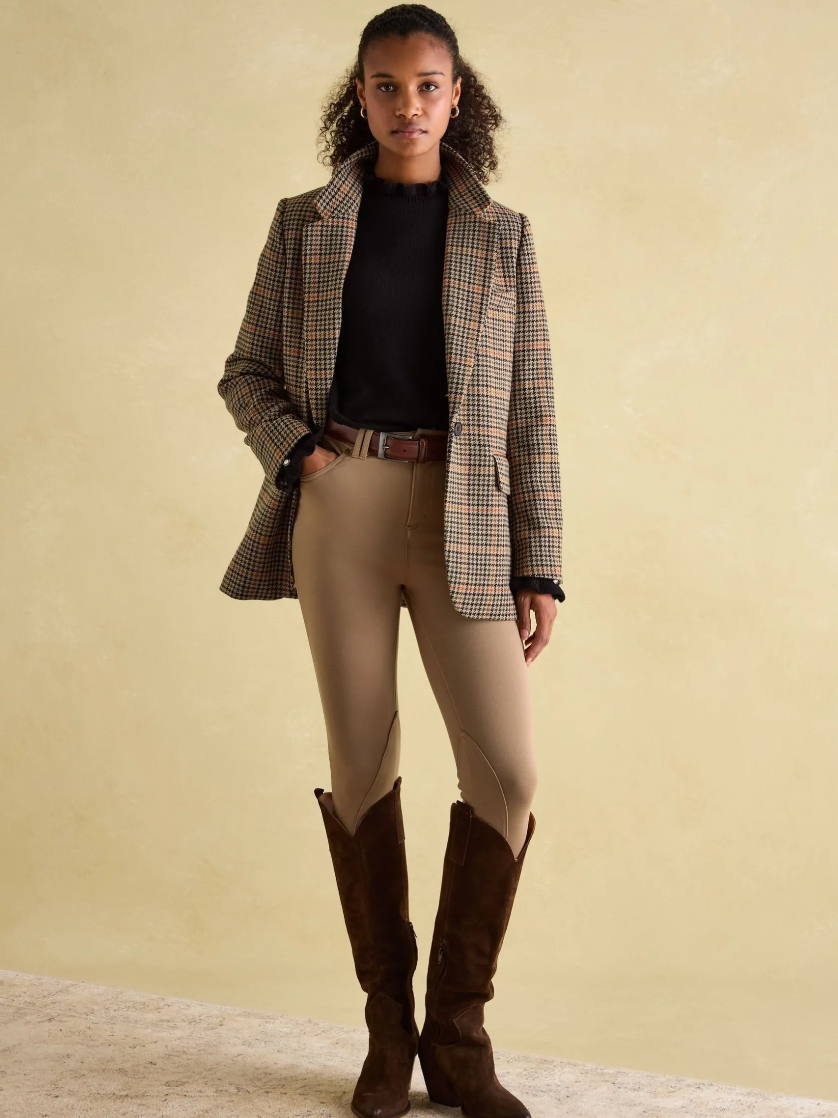 Keep it neutral with the Edith frill neck jumper. The perfect knit to have in your wardrobe all year round, it has long, slim-fitting sleeves with ribbed frilled cuffs, a high neck with frilled trim and a ribbed hem. For added detail, there are three metal buttons on the cuffs. Layer under blazers in colder weather or wear by itself when spring and summer arrive. Cotton blend. Slim-fitting sleeves. Frilled ribbed cuffs. Three buttons to each cuff. High neck with frill. Ribbed hem