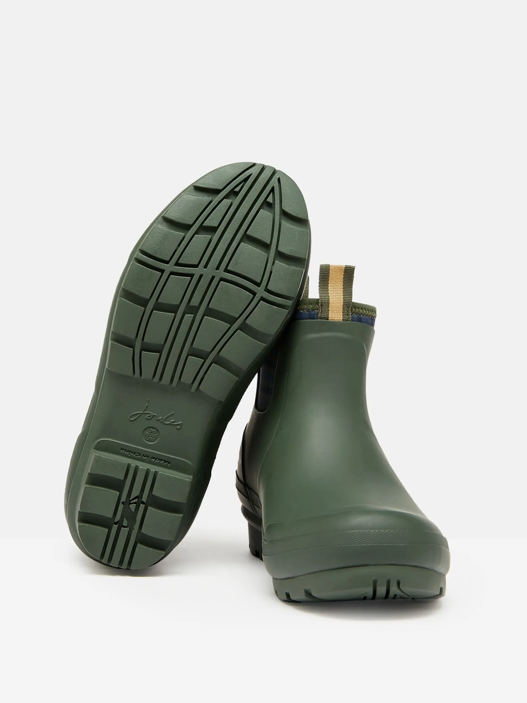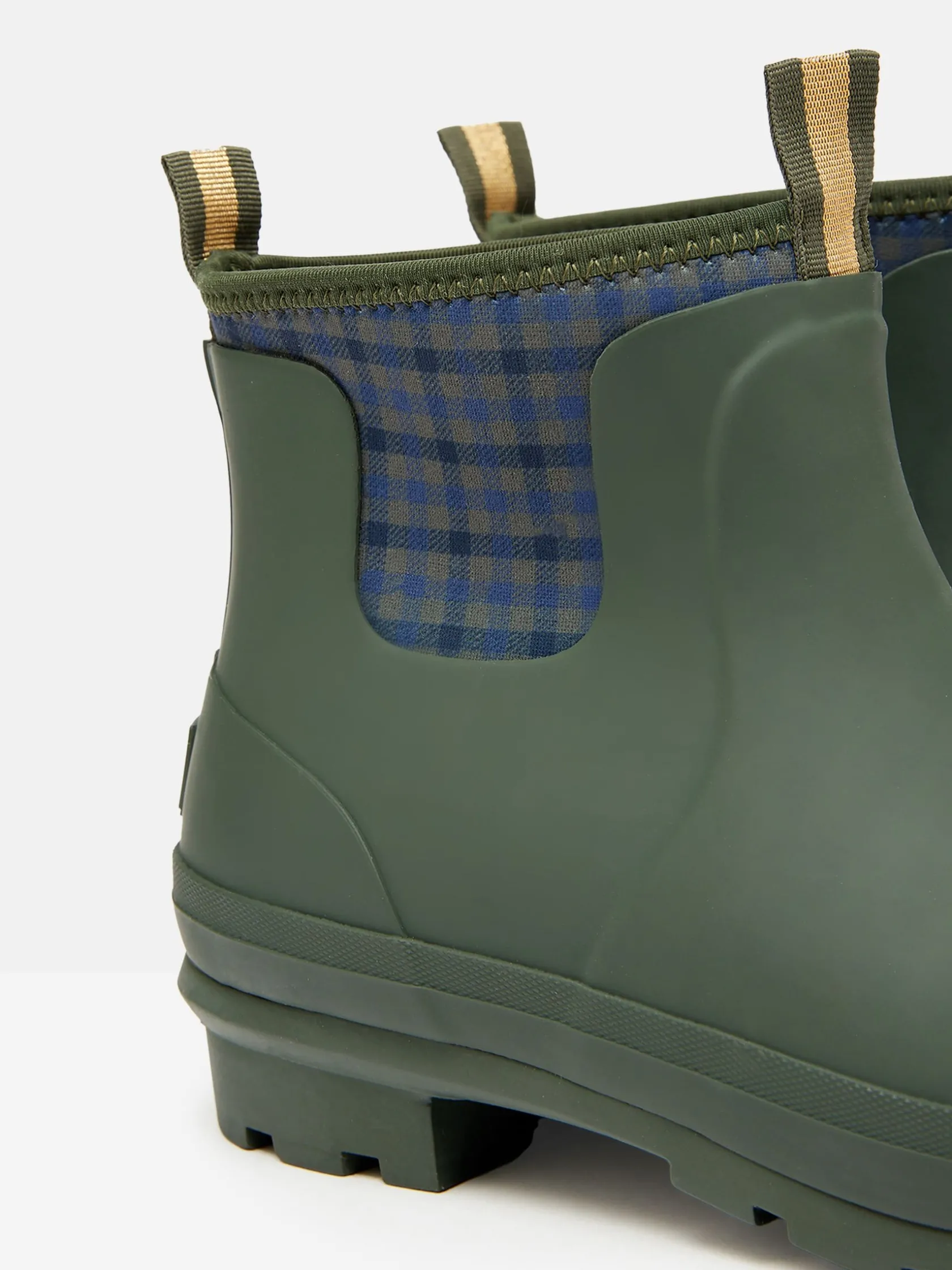 Ideal for pottering about the garden or going on woodland walks, these Foxton short wellies have been designed with your comfort in mind. The outer is crafted from hardwearing matte-effect rubber to keep your feet dry, and the lining is made from soft and flexible neoprene in a heritage check print. The outsole is water dispersing which means water is pushed outwards to provide better grip and contact with the ground in tougher terrain, and we’ve added two pull tabs, one to the front and one to the back, so it couldn’t be easier to slip them on and off at the door. Waterproof. Rubber outer. Neoprene lining for comfort. Pull loops at back and front. Removable insole. Exposed heritage check print. Water dispersing outsole. Covered by our One Year Welly Guarantee.