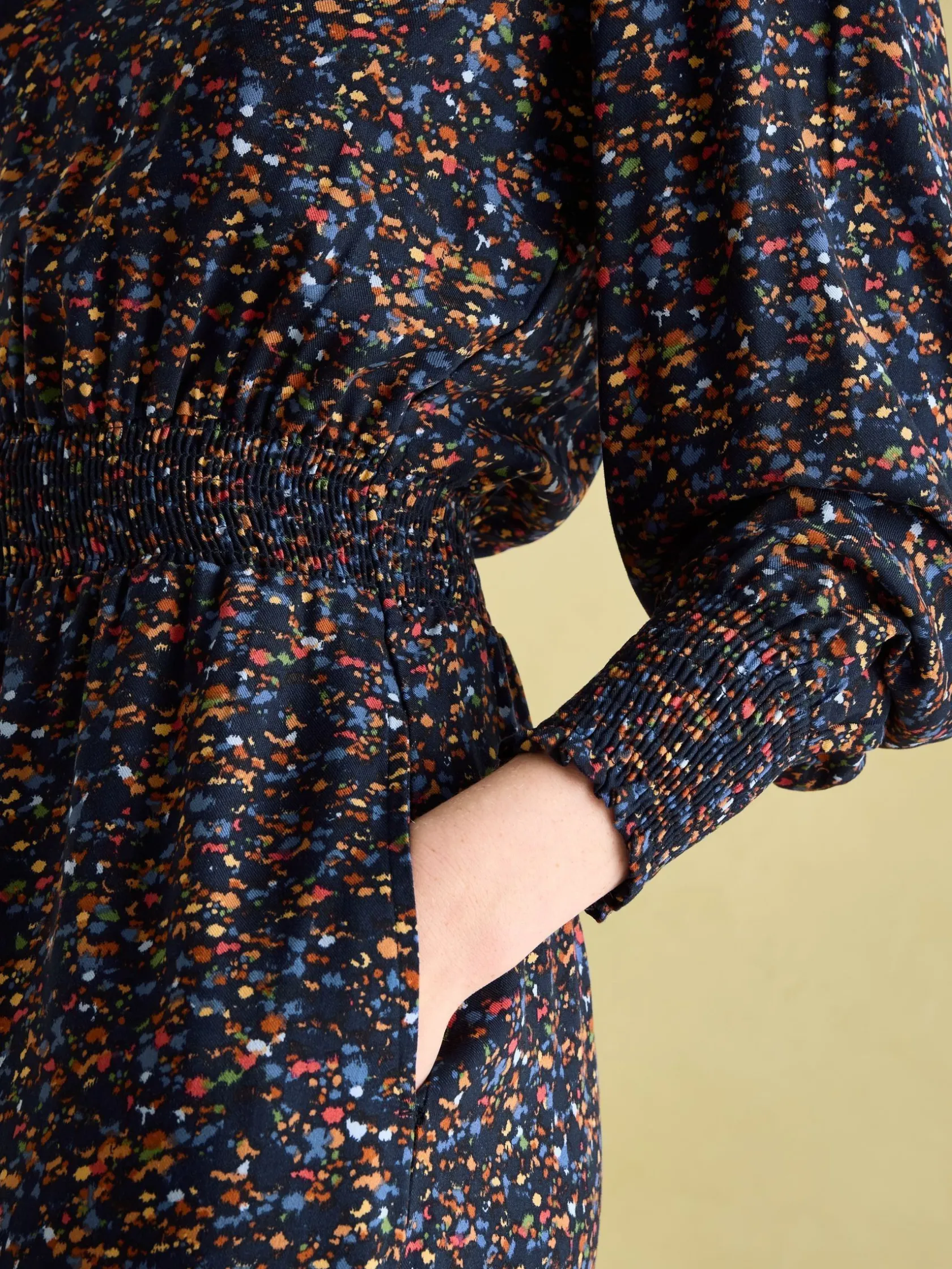 Pull out all the stops this season with the Georgina dress. Easy to dress up for parties and occasions, or dress down for the day-to-day, it’s the versatile piece your wardrobe needs. A round high neck, long sleeves with gathered shoulders and a maxi length work together to create a truly elegant silhouette you’ll never tire of wearing. Other elevating details include buttons to the bodice, shirred cuffs and waist for a flattering cinch and pockets in the side seams. An elaborate hand-drawn print adorns it which has been designed by our in-house print team, which means you won’t find it anywhere else. Maxi length. Long sleeves with gathered shoulders. Shirred cuffs. Shirred waistband. Round neck. Four fabric-covered buttons. Pockets in the side seams. Hand-drawn print.