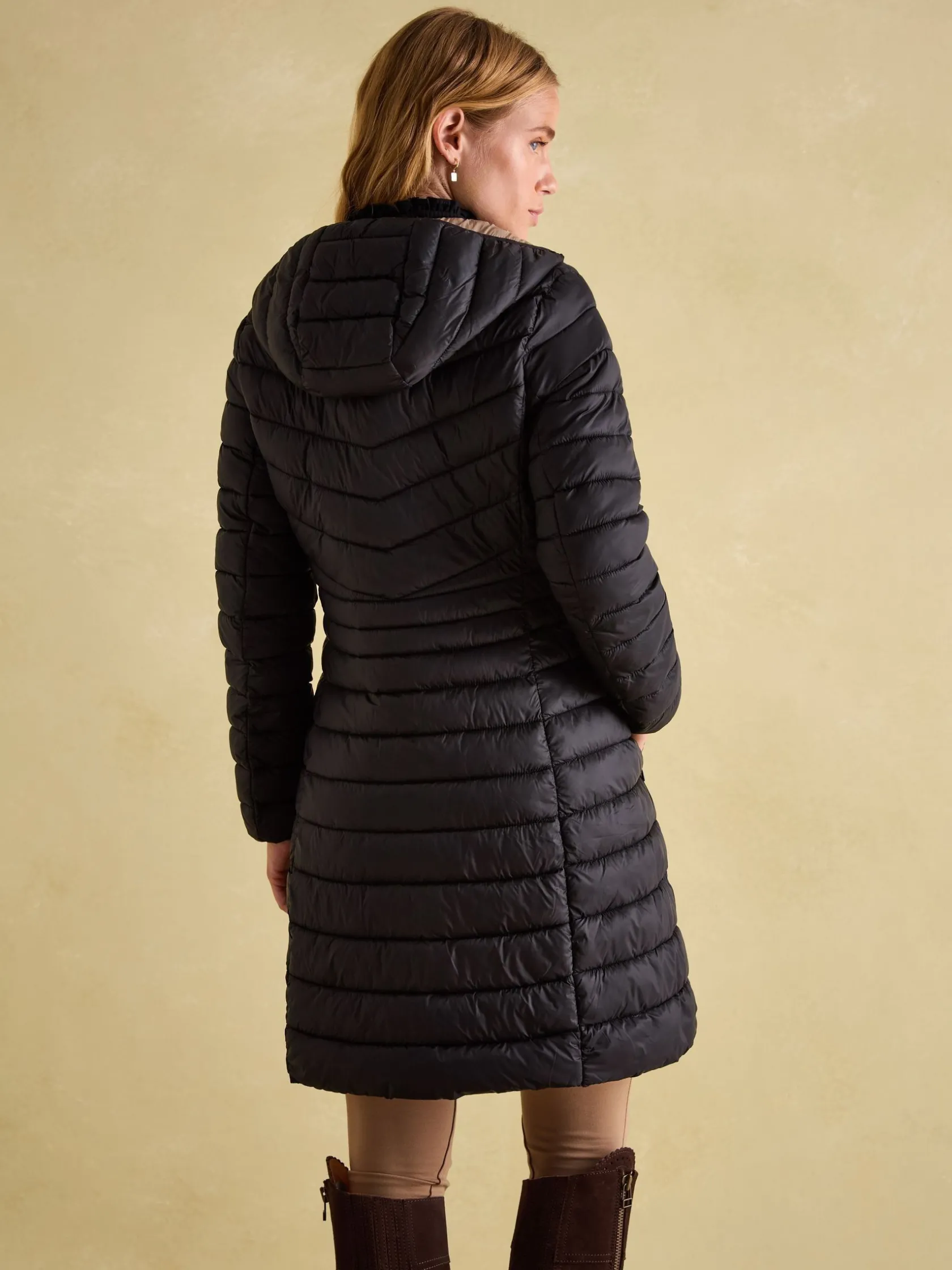 This long length padded jacket will probably spend more time off your coat stand than on it. Throughout the colder months of the year – whether it be the morning dog walk, a wander around town, or watching the rugby at the weekend, this coat won’t let you down. In a fitted shape and complete with a handy hood (did we mention this coat is showerproof, too?) useful side pockets and a zip fastening.nnLong lengthnPaddednShowerproofnSide pocketsnZip fasteningnHood