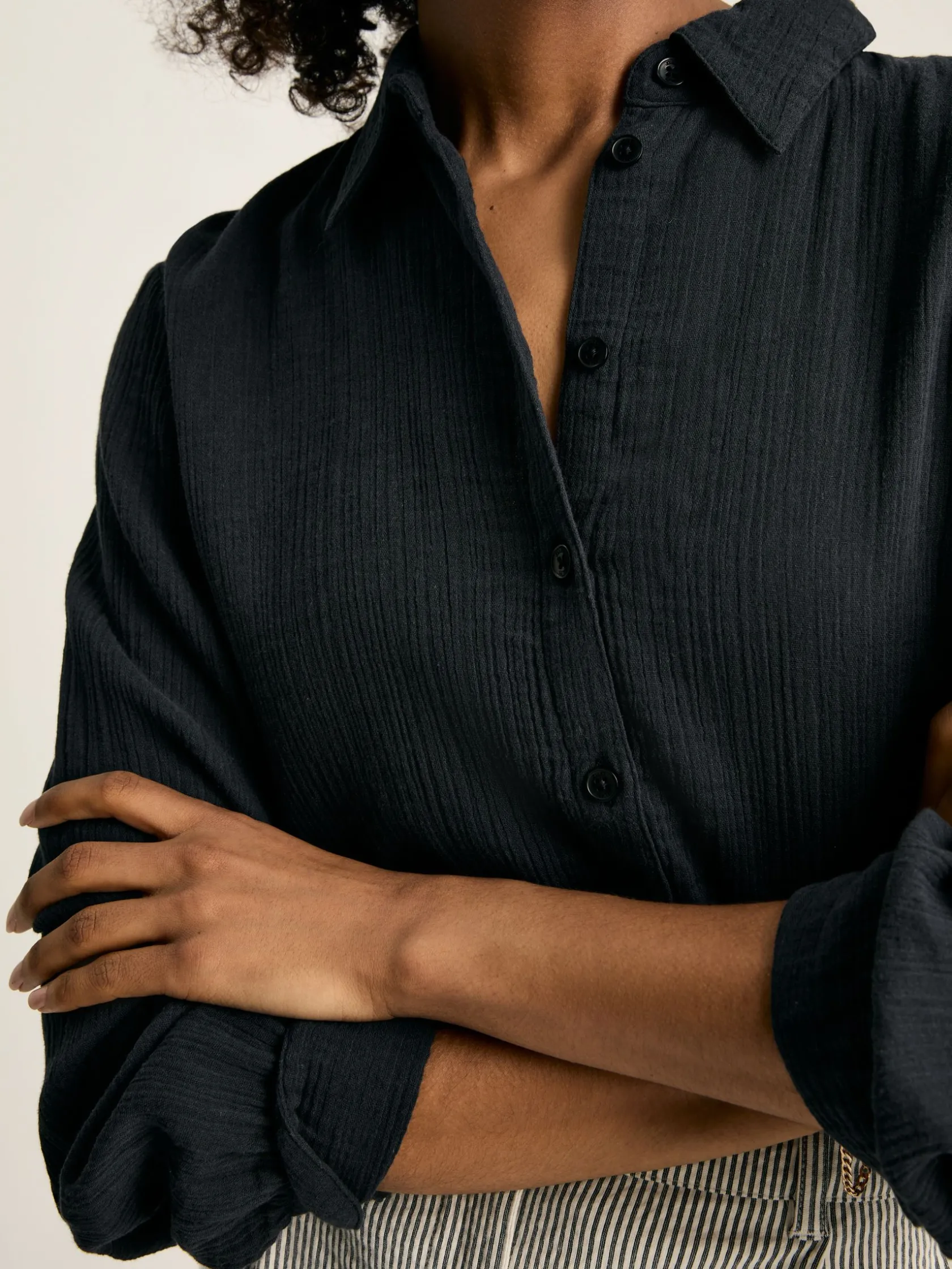 Nell is a versatile shirt you’ll get endless wear out of. Its cotton fabric, relaxed fit and length makes it perfect for throwing over swimwear in the summer, or dressing up your favourite shorts. It features a button down fastening, button cuffs and collar and comes in a neutral colour that is easy to style. This is a piece you’ll always be thankful for. 100% cotton. Longline length. Relaxed fit. Button down fastening. Collar. Curved hem. Button cuffs.