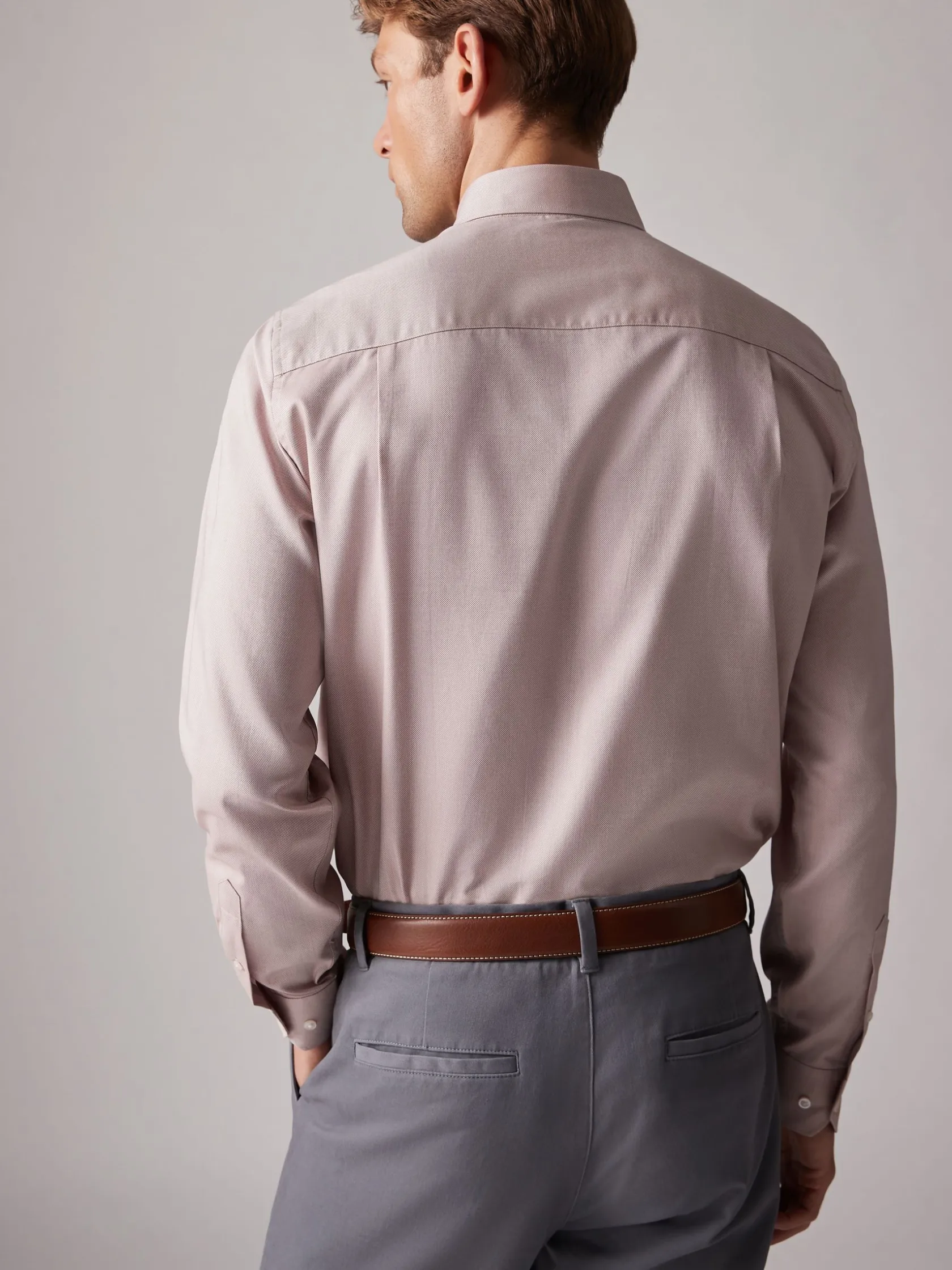 Well turned out style is easy to achieve with this shirt. Cut to a slim fit and made from soft cotton, it’s a piece designed for smart occasions. It has a button down fastening, single button cuffs and a button down point collar. The textured fabric finish elevates it beyond a basic. Cotton. Slim fit. Button down fastening. Single button cuffs. Button down collar. Textured finish.