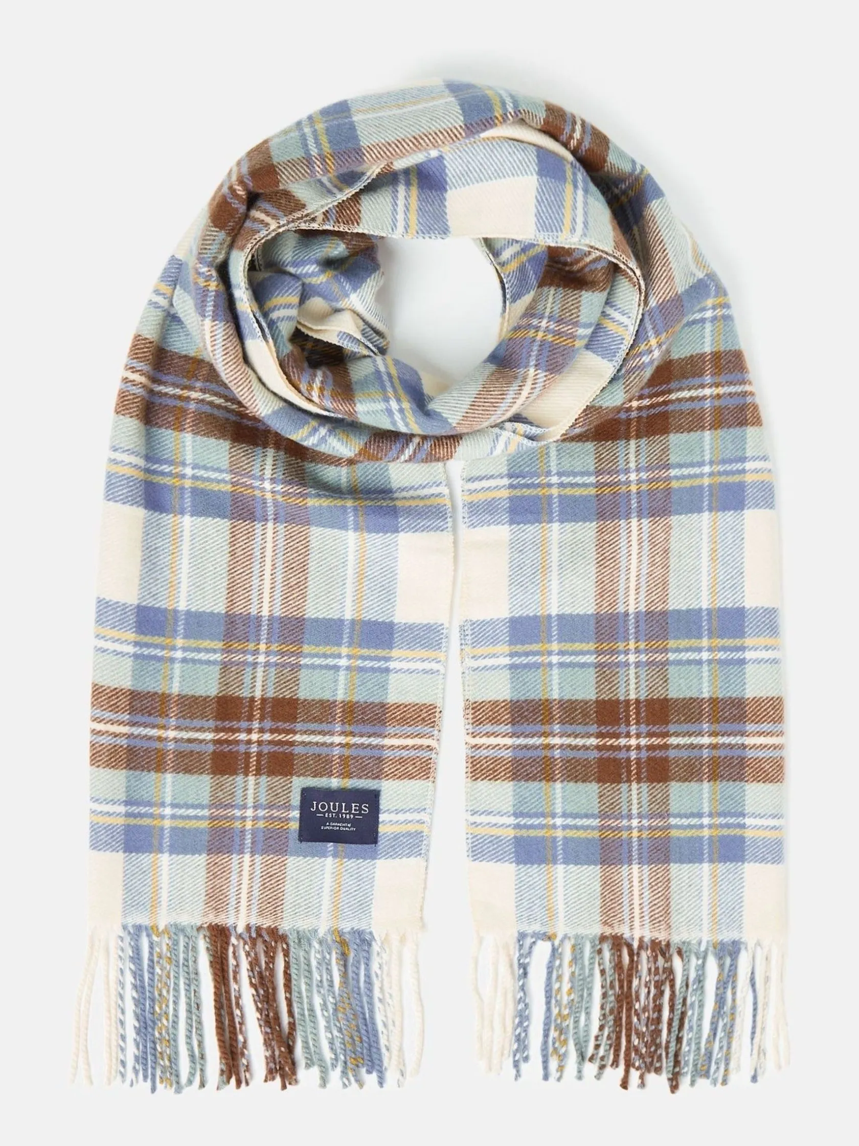 Practical yet dapper, the Langtree scarf will make a timeless addition to your cold weather wardrobe. It has a soft hand-feel, tasselled ends and a classic pattern that will never go out of style. Drape it under the lapels of your jacket so it’s ready and waiting for when the temperatures drop. Soft hand feel. Tasselled ends. Checked pattern. Joules branded tab to the edge. Dimensions: 170cm x 37cm