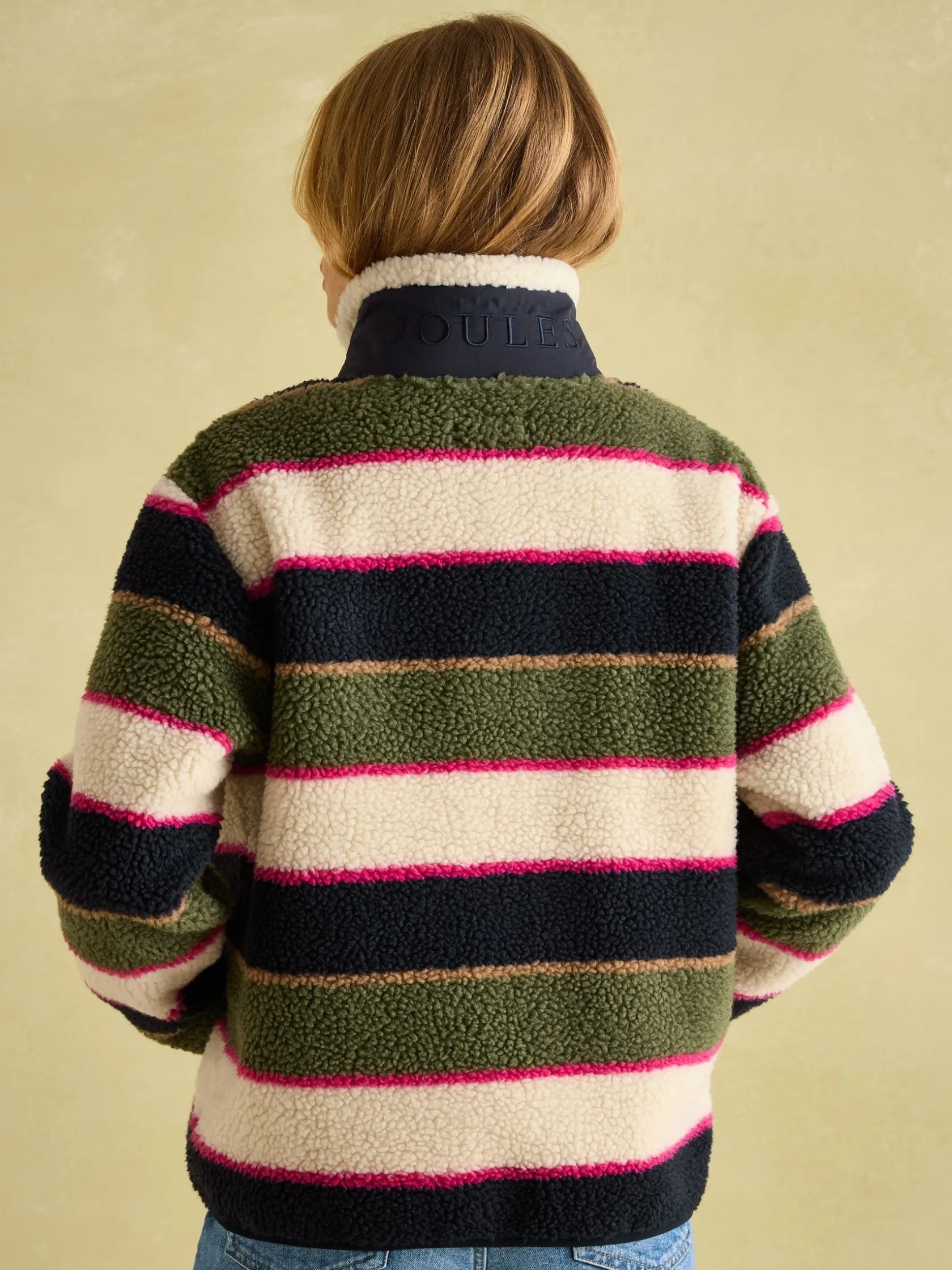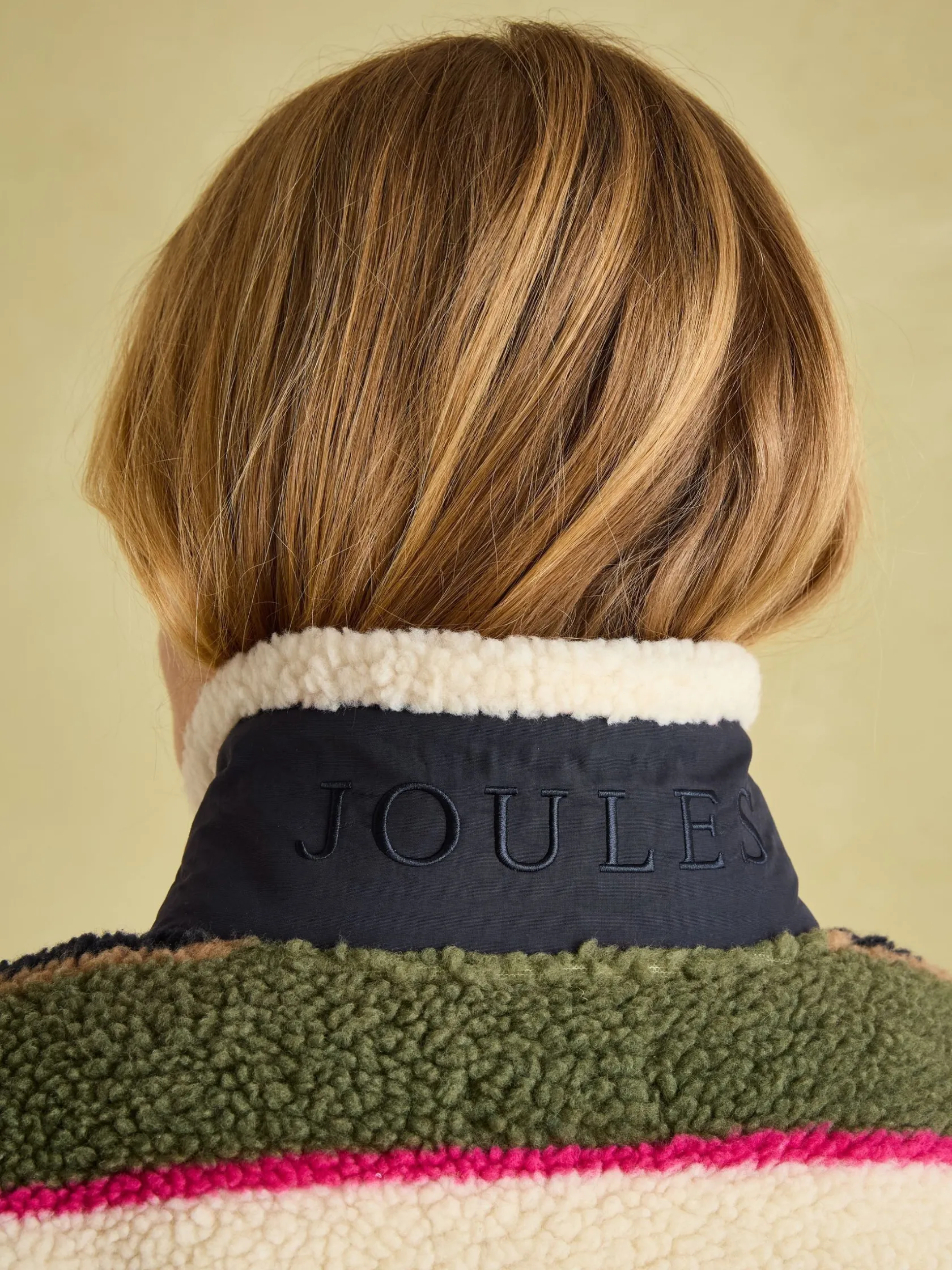 New Joules Lottie Multi stripe Borg Fleece Jacket Multistripe