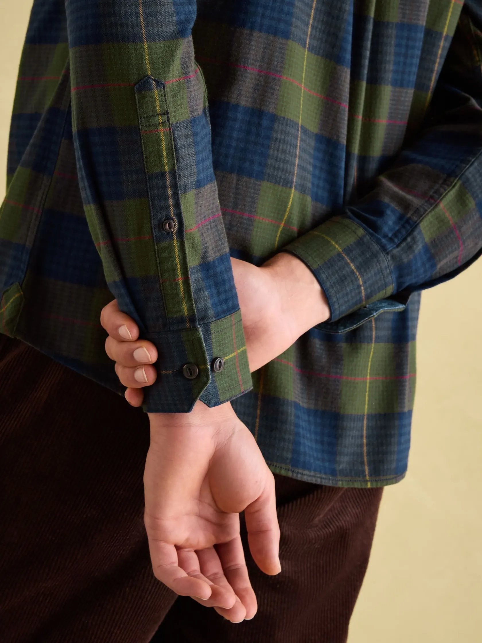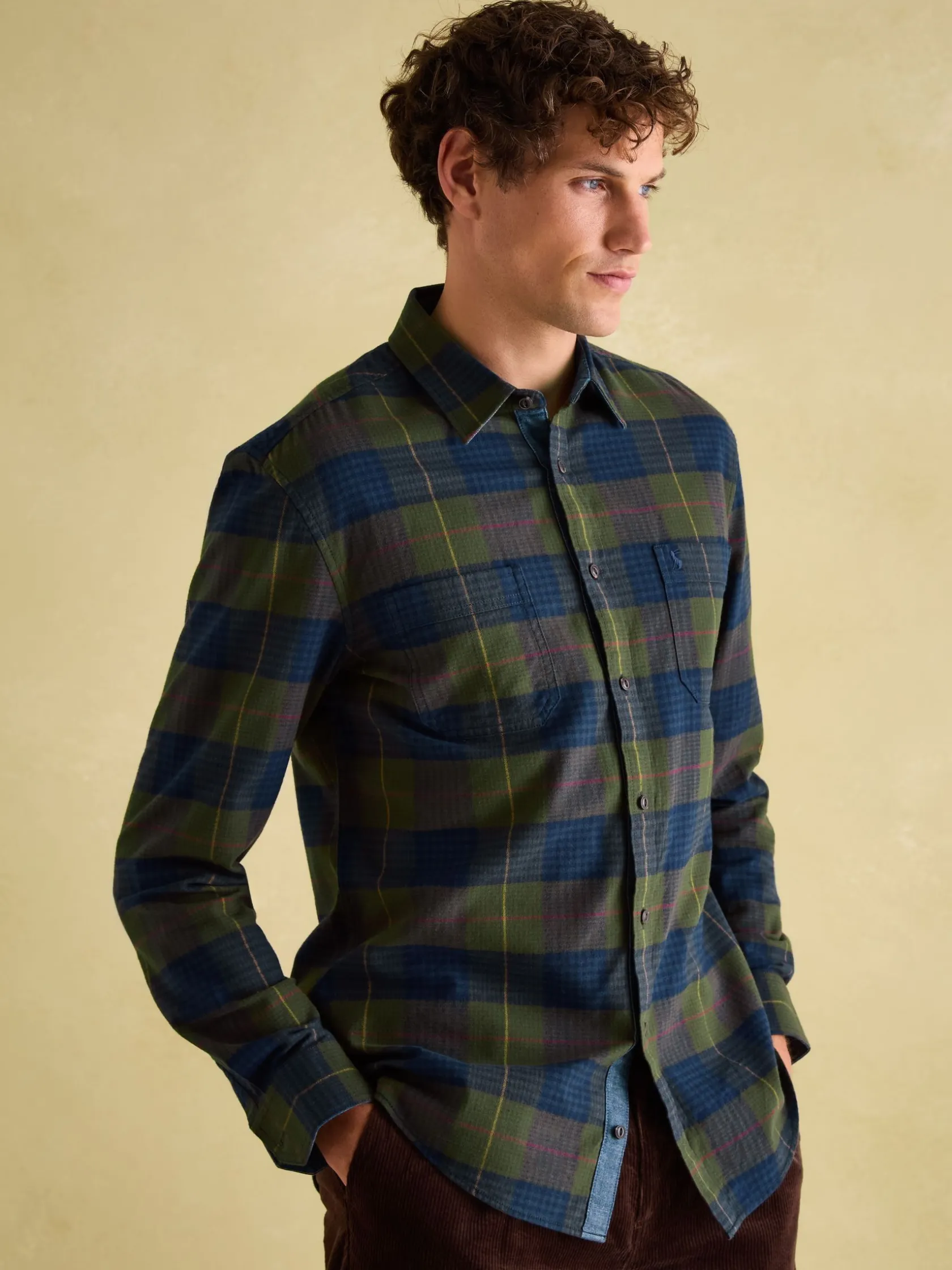 A man’s wardrobe isn’t complete without a collection of easy-going checked shirts to hand. With the Buchanan, both smart and casual boxes are ticked. Wear it unbuttoned over a T-Shirt and jeans for casual days, or buttoned up with chinos for more refined look. This all-rounder has a soft brushed fabric and an unfussy, classic fit. Other functional details include a button down fastening, button cuffs and a patch pocket to the chest. The checked pattern features a deeper colour palette for the cooler months and is finished with chambray trims. Woven. Classic fit. Long sleeves. Button fastening. Button cuffs. Collar. Chambray trims. Hanging loop to the back. Checked.