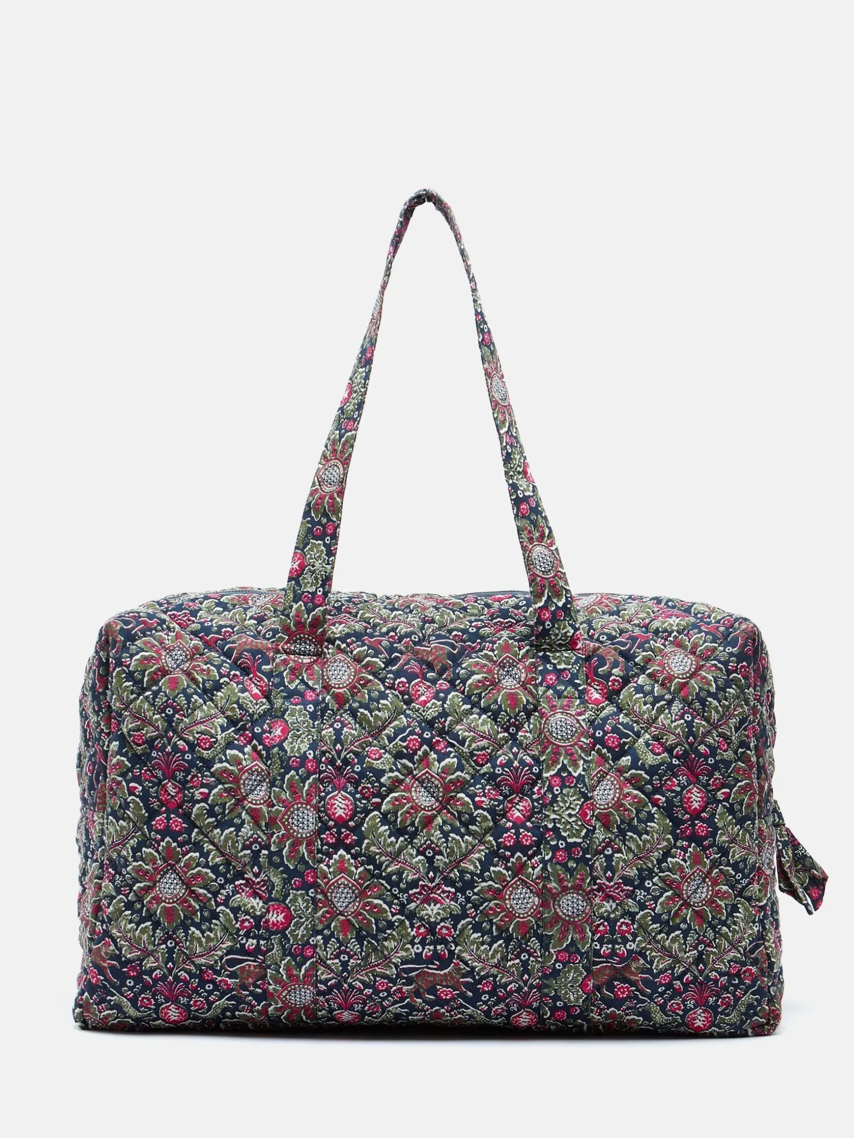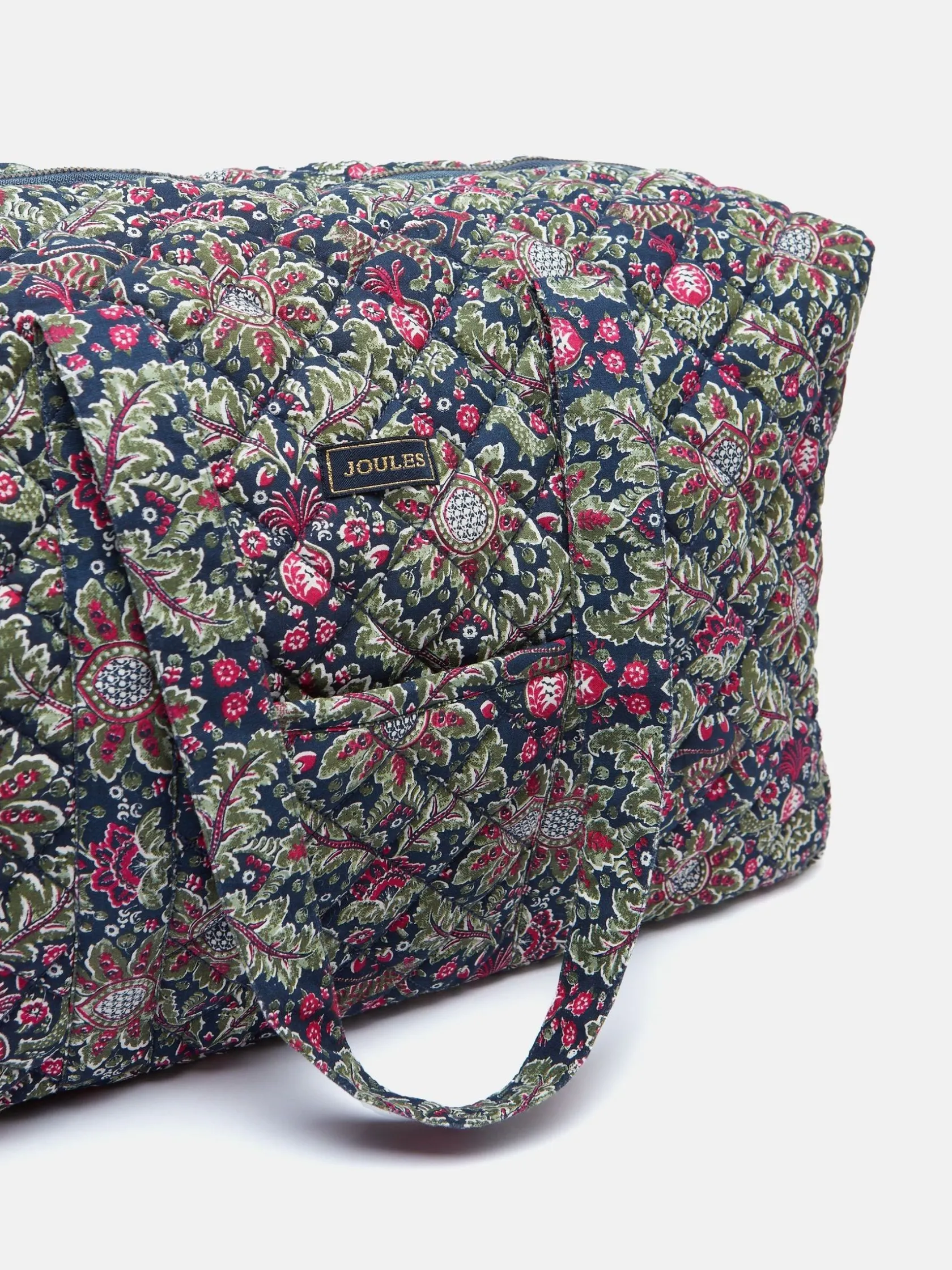 Designed for short trips and getaways, the Dolly weekend bag is a travel companion you can always rely on. It’s adorned with a paisley print which incorporates an opulent colour palette sure to make quite the statement. As well as looking good, it’s functional too with enough room for everything you might need. The carry handles are long enough to be worn on the shoulders or as a holdall and the front slip-in pocket is perfect for easy-to-reach items. Inside there’s two additional slip in elasticated pockets for keeping things organised and it all fastens with a metal zip. It’s finished with a gold-look branded label to the front. Bring a little joy to someone you love and give this as a gift. It’ll certainly go down a treat. Quilted. Carry handles. Metal zip fastening. Front slip-in pocket. Two internal elasticated slip-in pockets. Hand-drawn print. Dimensions: 48cm x 28. 5cm x 22cm. Handle drop length: 31cm