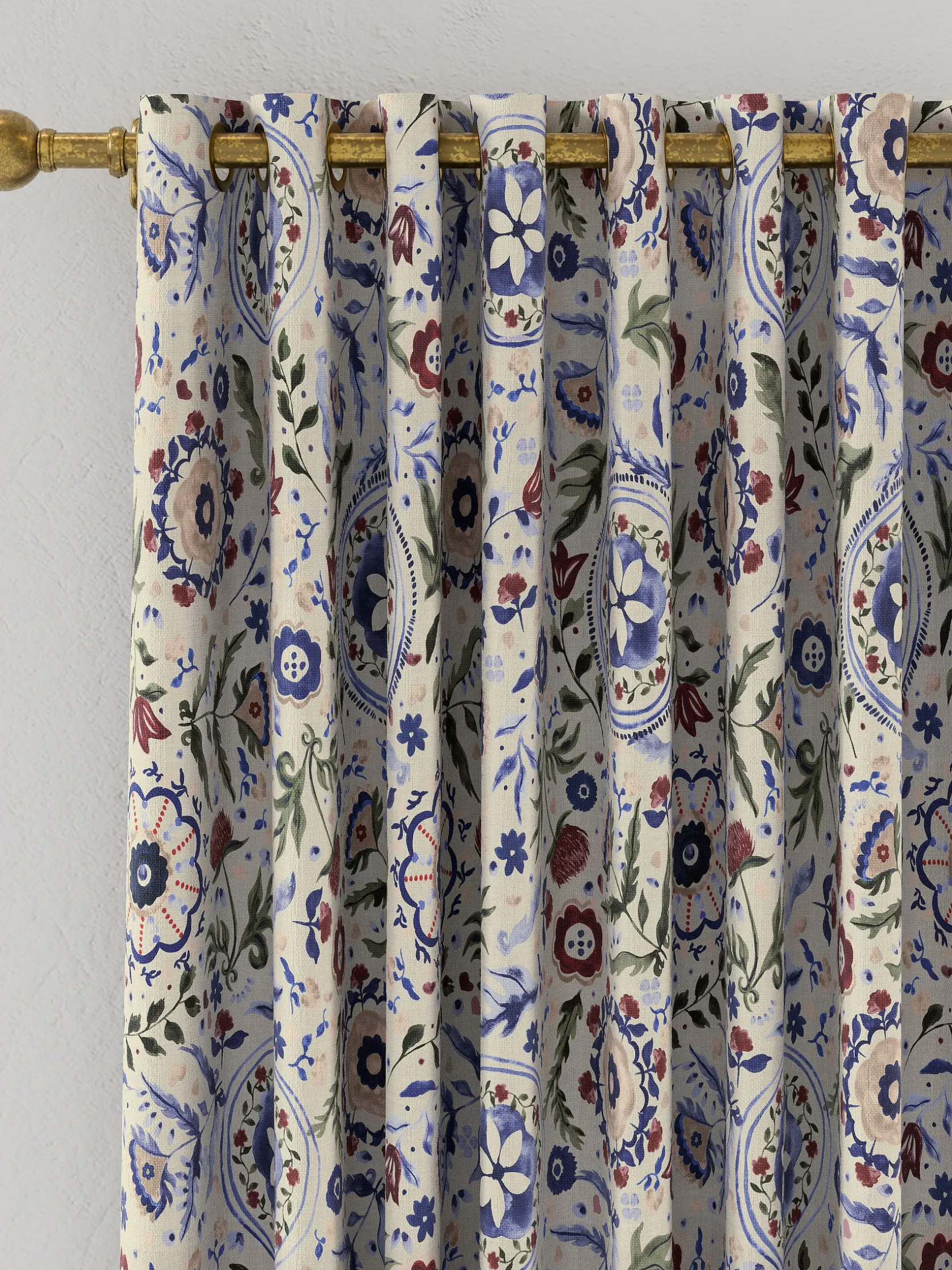 With a vivid colour palette and adorned with an opulent print, the Festival Flowers curtains will make a stylish statement in your home. The print is a true work of art that will be the focal point of any room. They’re made from 100% cotton and have a matte silver eyelet header which makes them easy to hang and allows the curtains to fold away neatly. A blackout lining not only ensures your privacy and keeps out the light, but also gives the curtains structure allowing them to drape beautifully. Choose from six sizes to fit a variety of windows. 100% cotton. Blackout lining. Metal eyelets. Festival floral print. Six sizes are available.