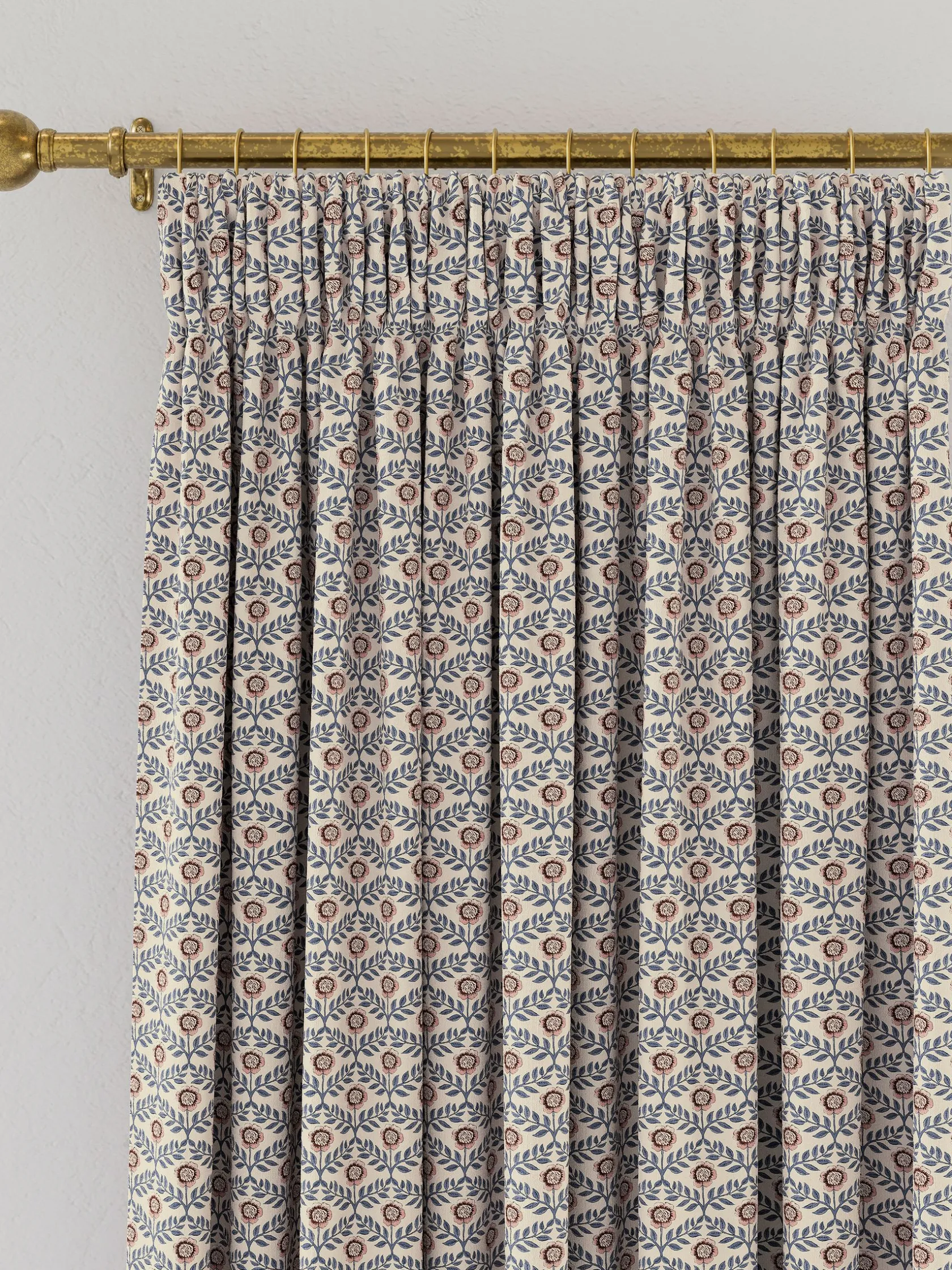 Online Joules Floral Foulard Set of 2 Blue & Cream Blackout Pencil Pleat Curtains Blue&Cream