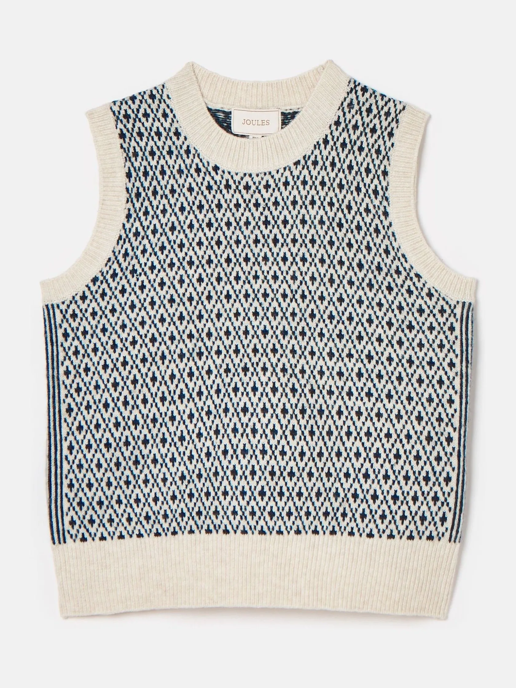 Online Joules Ingrid Patterned Knitted Vest Cream/Navy