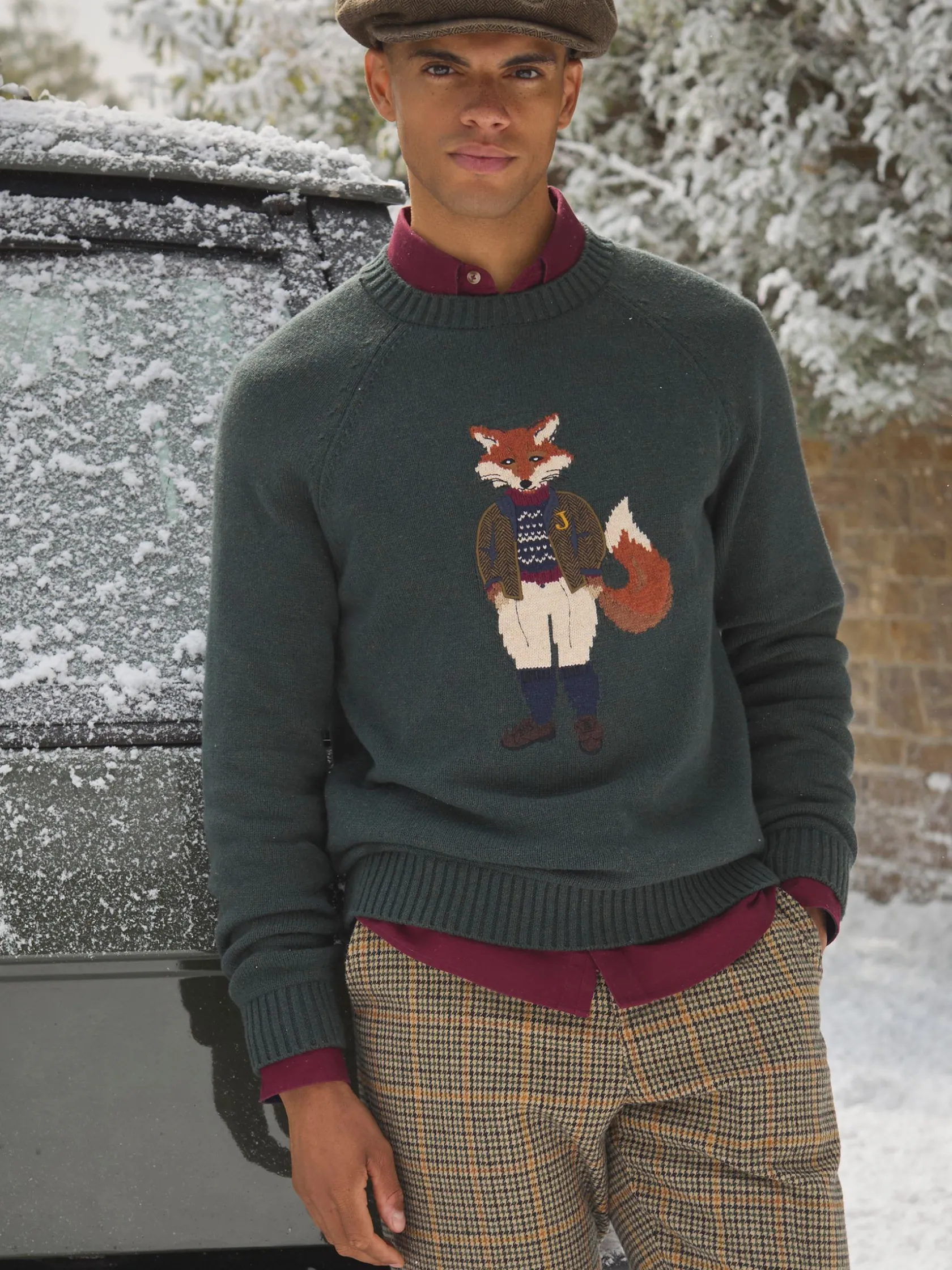Jonty Fox is set to bring character to your autumn and winter wardrobe. Bright eyed and bushy tailed, this jumper will make quite the statement in your wardrobe. The rather distinguished Jonty is the focal point of the piece and represents the eccentricity of British country style. The well dressed fox is knitted into the jumper while a cutting from a bespoke piece of Joules tweed has been stitched on top to create a beautifully textured finish. The jumper itself has been crafted with care from a quality cotton blend, it has a classic fit through the body and raglan sleeves for supreme comfort. The round neck and ribbed hem and cuffs offers the opportunity to layer almost anything underneath while its heritage colour palette is perfect for the season. Cotton blend. Classic fit. Intarsia fox to the front. Bespoke Joules tweed cut and laid onto the piece. Long raglan sleeves. Round neck. Ribbed hem, neck and cuffs.