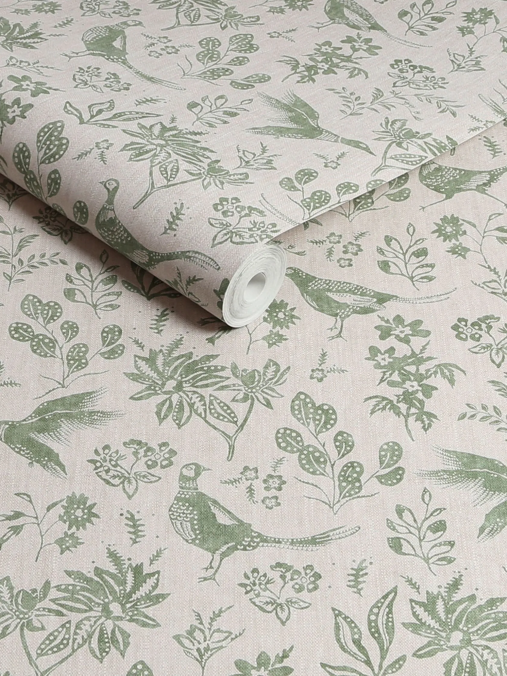 Online Joules Linen Green Pheasant Print 10M Wallpaper LinenGreen