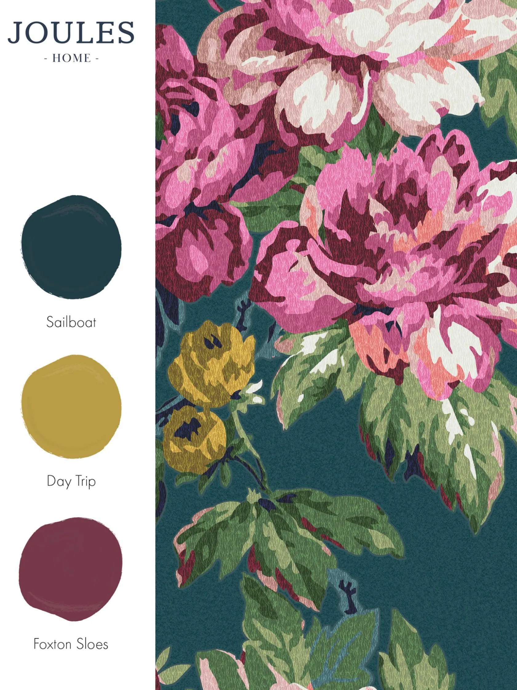 Embrace the bold and dramatic with this rich and impactful floral. Once only found in stately homes, this is your chance to add this classic style to your own humble abode. This blossoming large scale floral wallpaper design features flowers in full bloom, trailing through foliage in a stunning, rich colour palette of pinks and fuchsia on a luxurious teal background thats finished with a textural effect. This eye-catching design has a large repeat for impactful scale and is printed on a matt substrate for a contemporary look and feel. This wallpaper is also paste-the-wall, making it easy to hang. Pattern Repeat: 72cm, Drop Type: Offset.