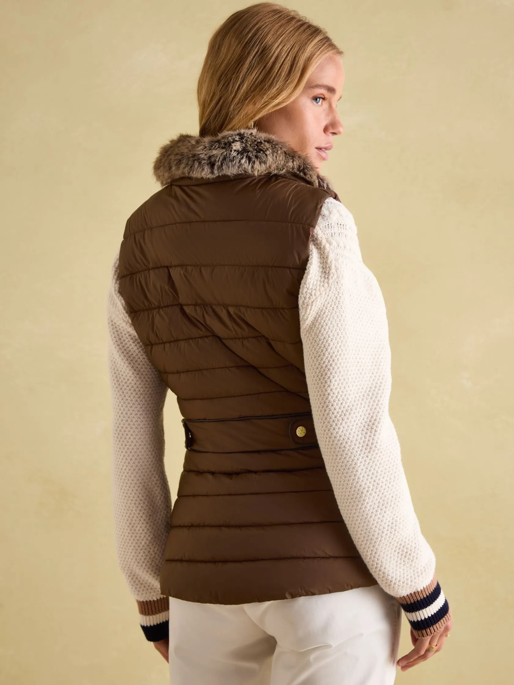 Outlet Joules Beckley Padded Showerproof Gilet With Detachable Faux Fur Collar Brown