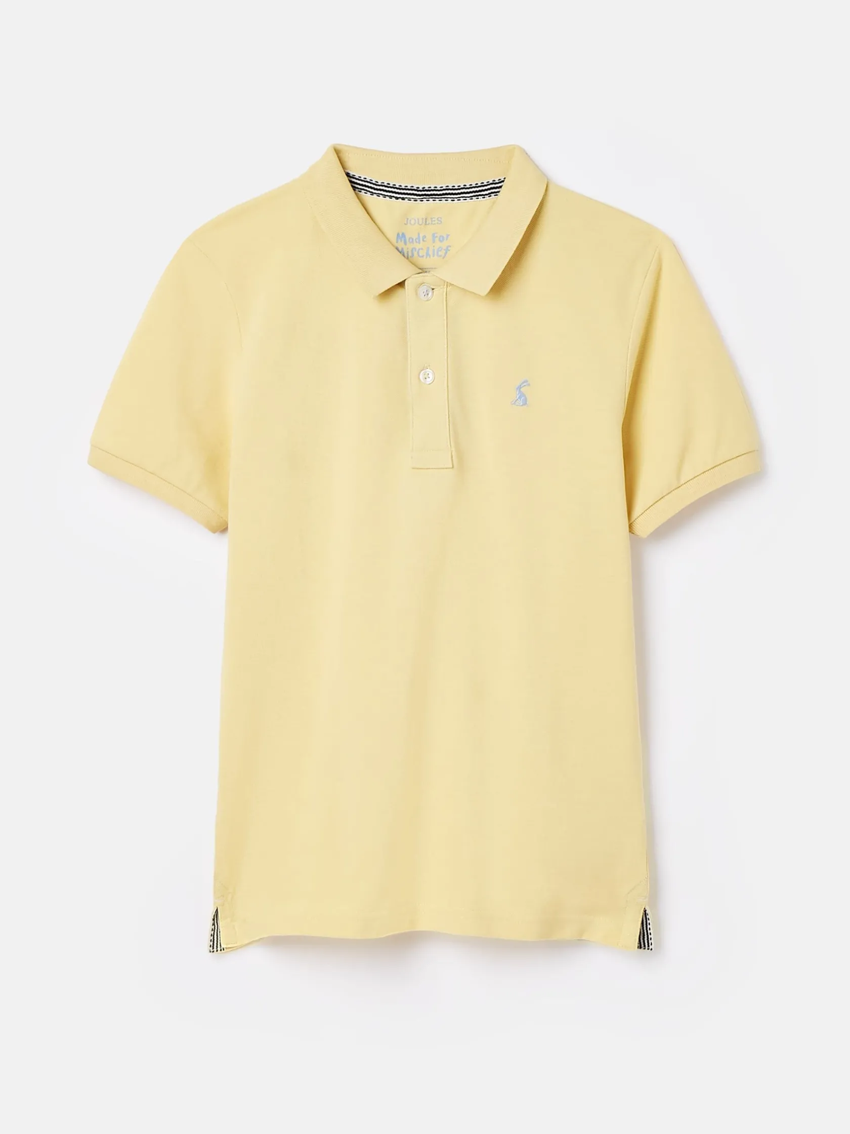 Inspired by our styles for grown-ups, this polo shirt is perfect for your little whippersnappers. It is made from a quality cotton pique fabric that will stand the test of time and can be handed down when they inevitably grow out of it. Traditional polo details include short sleeves with ribbed cuffs, a button placket, a collar and embroidery to the chest. It’s the contrast undercollar and branded details that make it distinctively Joules. The ideal style for garden gatherings and sports games on the lawn. Cotton pique. Short sleeves. Button placket. Contrast stripe undercollar. Embroidered hare to the chest.