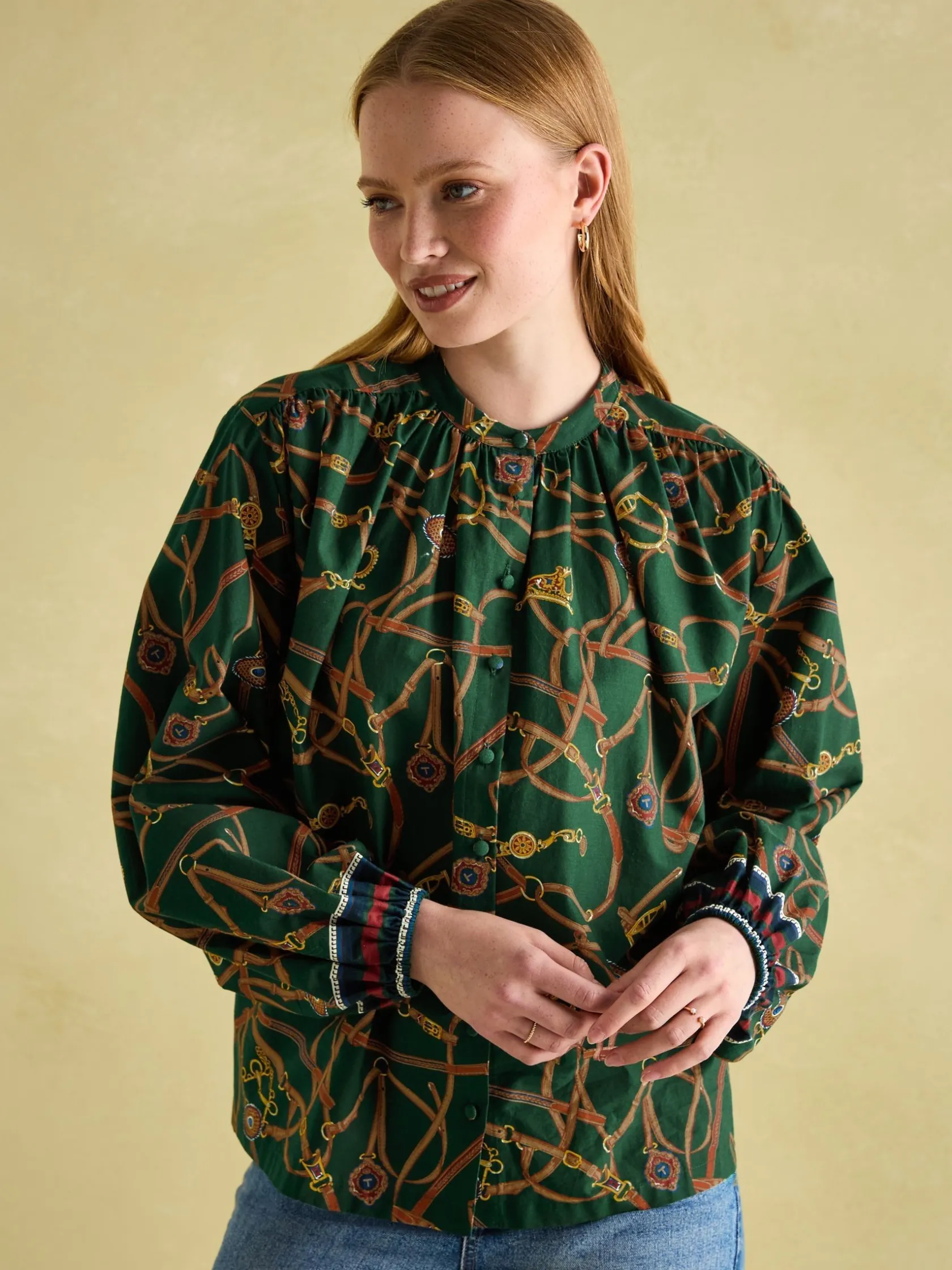 Showcasing the talents of our print team, the Cecilia blouse is a wearable work of art, with a print that you can guarantee will receive compliment after compliment. It’s designed to have an all over relaxed fit, but if a ‘classic’ fit is more your style, then simply size down. It’s crafted from 100% cotton making it an enduring piece you’ll wear for a long time, and has a stylish, collarless design. The long, voluminous sleeves and elasticated cuffs makes a statement. Dress it up by layering it under a wool blazer, or pare it back by teaming it with a knitted vest and jeans. 100% cotton. Relaxed fit (size down for a classic fit) Long voluminous sleeves. Elasticated cuffs. Button down fastening. Collarless design.