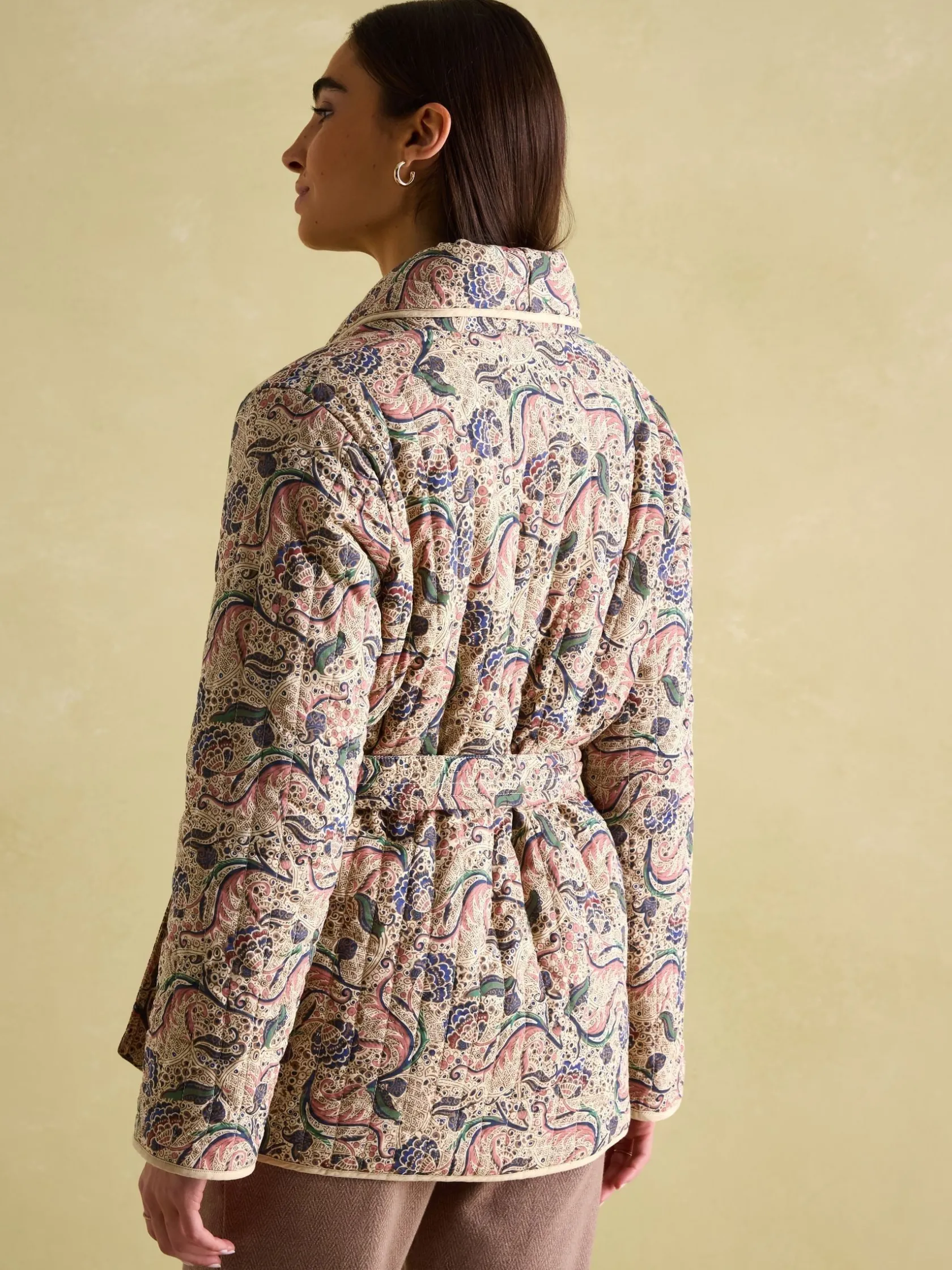 Outlet Joules Floral Paisley Cotton Quilted Jacket With Belt FloralPaisley