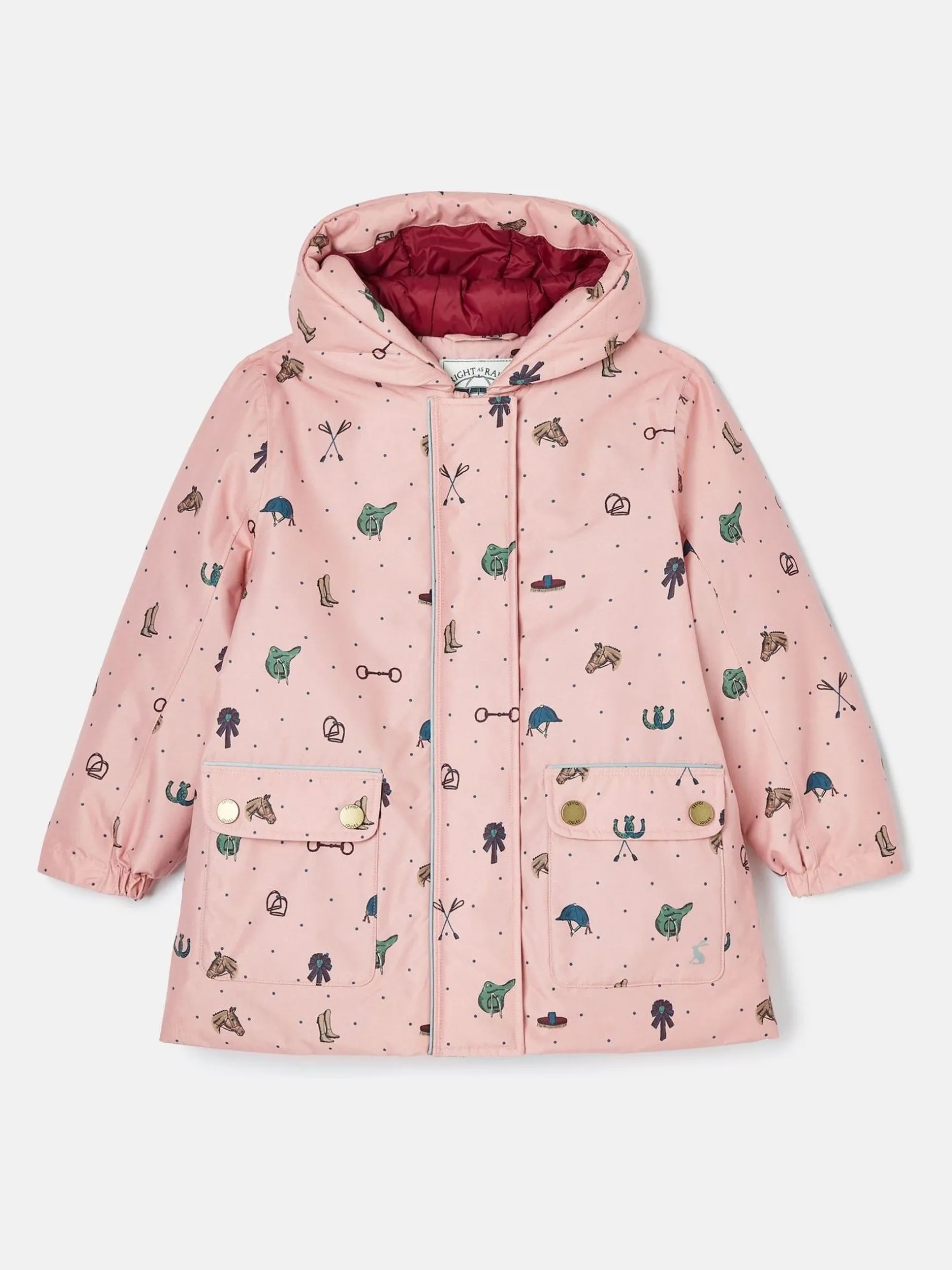 Outlet Joules Girls’ Fairview Pink Horse Print Waterproof Coat with Quilted Lining PinkHorsePrint