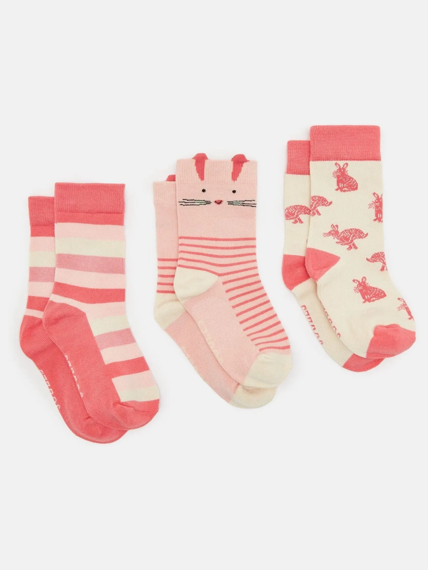 Outlet Joules Girls’ Neat Feet 3 Pack Socks Pink