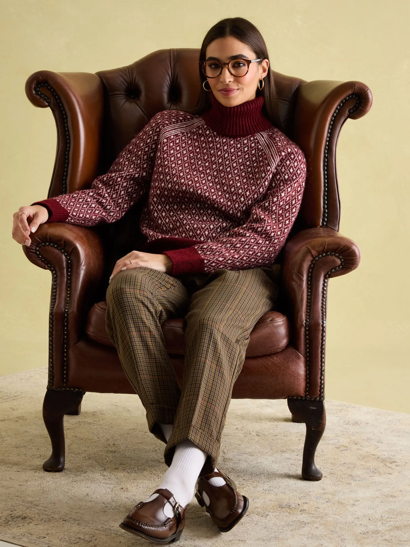 If there’s one thing to invest in during the autumn and winter months it’s knitwear. Always stylish and timeless, it will reserve space in your wardrobe forever. The Ingrid jumper features a detachable roll-neck (removable via hidden buttons) transforming it into a round neck, which means you can switch between two looks. Using a two-coloured knitting pattern called ‘Sanquhar’ (named after the Scottish town it originates) it’s is our take on this traditional technique. It has a super soft hand-feel, long raglan sleeves, deep ribbed cuffs and hem and is finished with contrasting striped side panels. If you find yourself falling in love with this style, why not pick up the matching Ingrid vest too? Wool blend. Knitted. Traditional Sanquhar knitting technique. Detachable roll neck for two styles in one. Long, raglan sleeves. Deep ribbed hem and cuffs. Contrasting striped side panels.