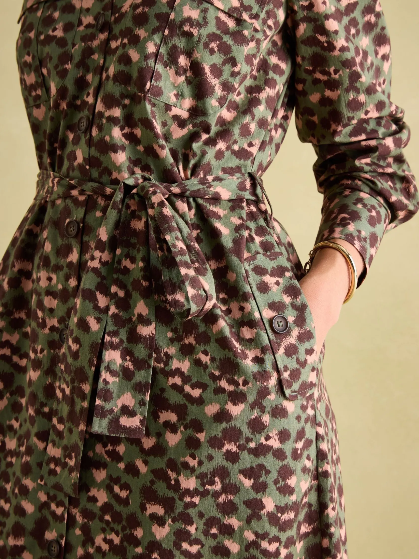 Combining utilitarian style with flattering details, the Meredith dress is a great piece to welcome into your autumn wardrobe. The full button down fastening, abundance of pockets (two at the chest and two on each side) is a nod to its utilitarian influence, while the removable belt allows you to cinch it at the waist, or wear it without for a more relaxed fit. It sits at a midi length and has long sleeves with button cuffs making it a wonder for the cooler months. Wear it with a style of leather riding-style boots for a look that screams British elegance, or pumps for a cool casual feel. Cotton. Midi length. Utilitarian style pockets to the chest and side. Full button down fastening. Collar. Long sleeves with button cuffs. Removable belt at the waist.