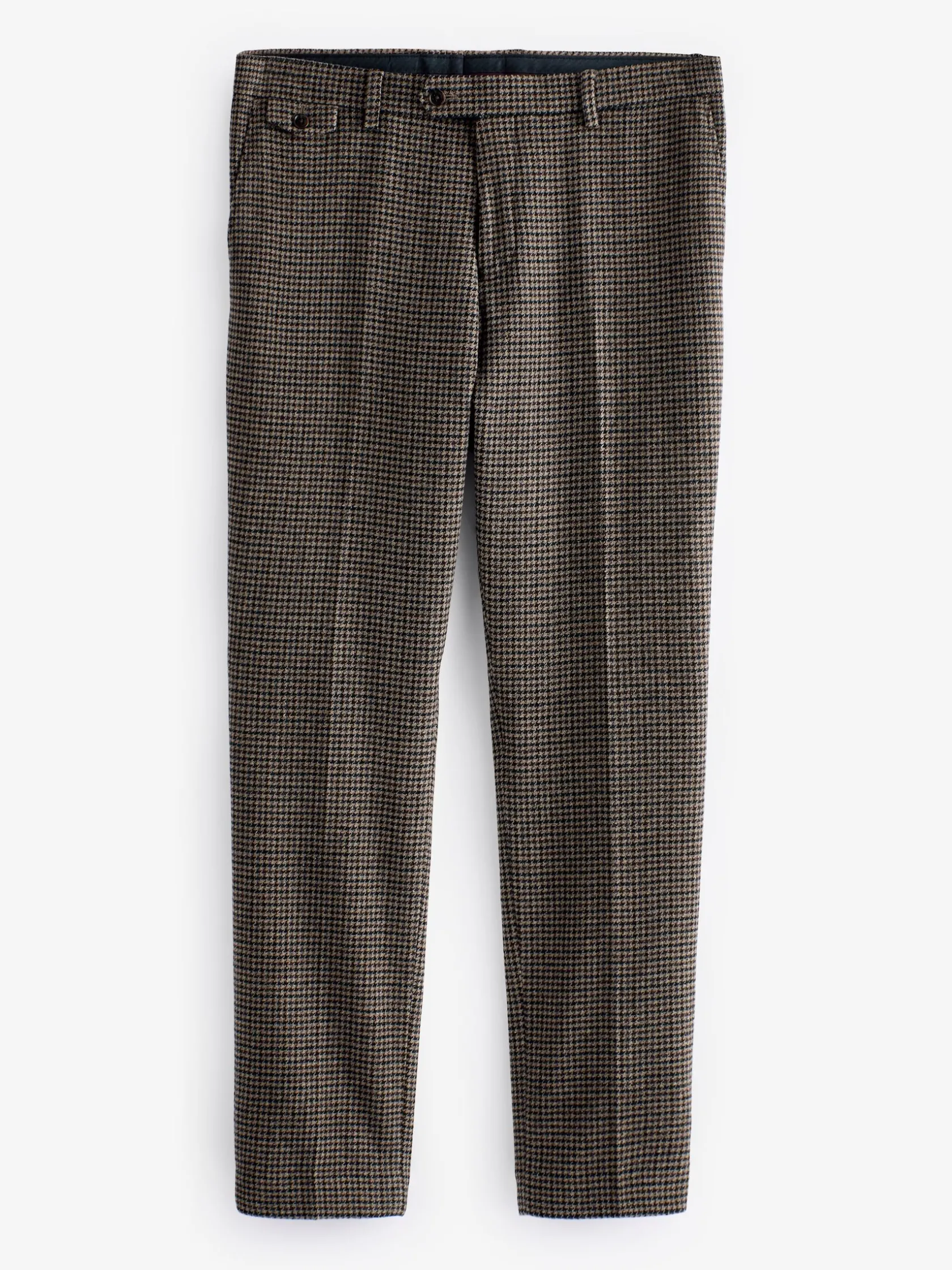 With a country heritage and a distinctive pattern, dogtooth trousers are a staple for any man’s autumn and winter wardrobe. And this pair will ensure that wherever you’re going, you turn up in style and comfort. They are tailored to a slim fit and are made from a soft Italian fabric with enduring quality that will last and last. Details such as the hook and bar fastening, belt loops, side pockets and welt pockets to the back all contribute towards making these a classic style you will come to rely on. Their versatility makes them easy to style with a plain t-shirt and trainers for an everyday look, or with the matching suit jacket for more formal plans. nn- Slim fitn- Italian dogtooth fabricn- Hook and bar fasteningn- Belt loopsn- Side pocketsn- Two welt pockets to the back with button fastening