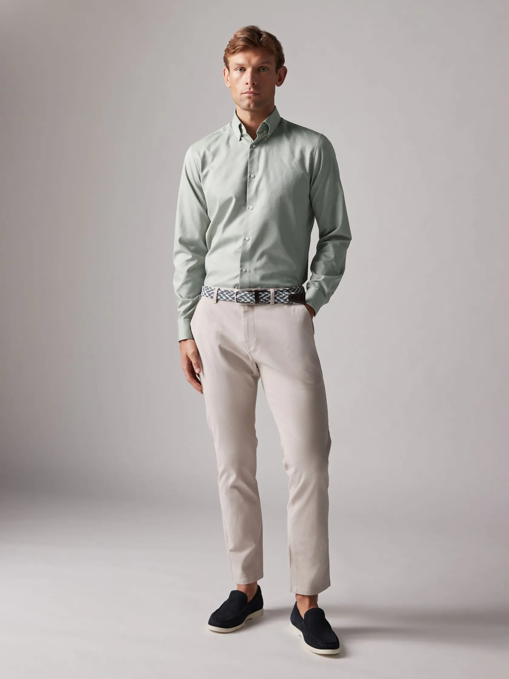 Well turned out style is easy to achieve with this shirt. Cut to a slim fit and made from soft cotton, it’s a piece designed for smart occasions. It has a button down fastening, single button cuffs and a button down point collar. The textured fabric finish elevates it beyond a basic. Cotton. Slim fit. Button down fastening. Single button cuffs. Button down collar. Textured finish.