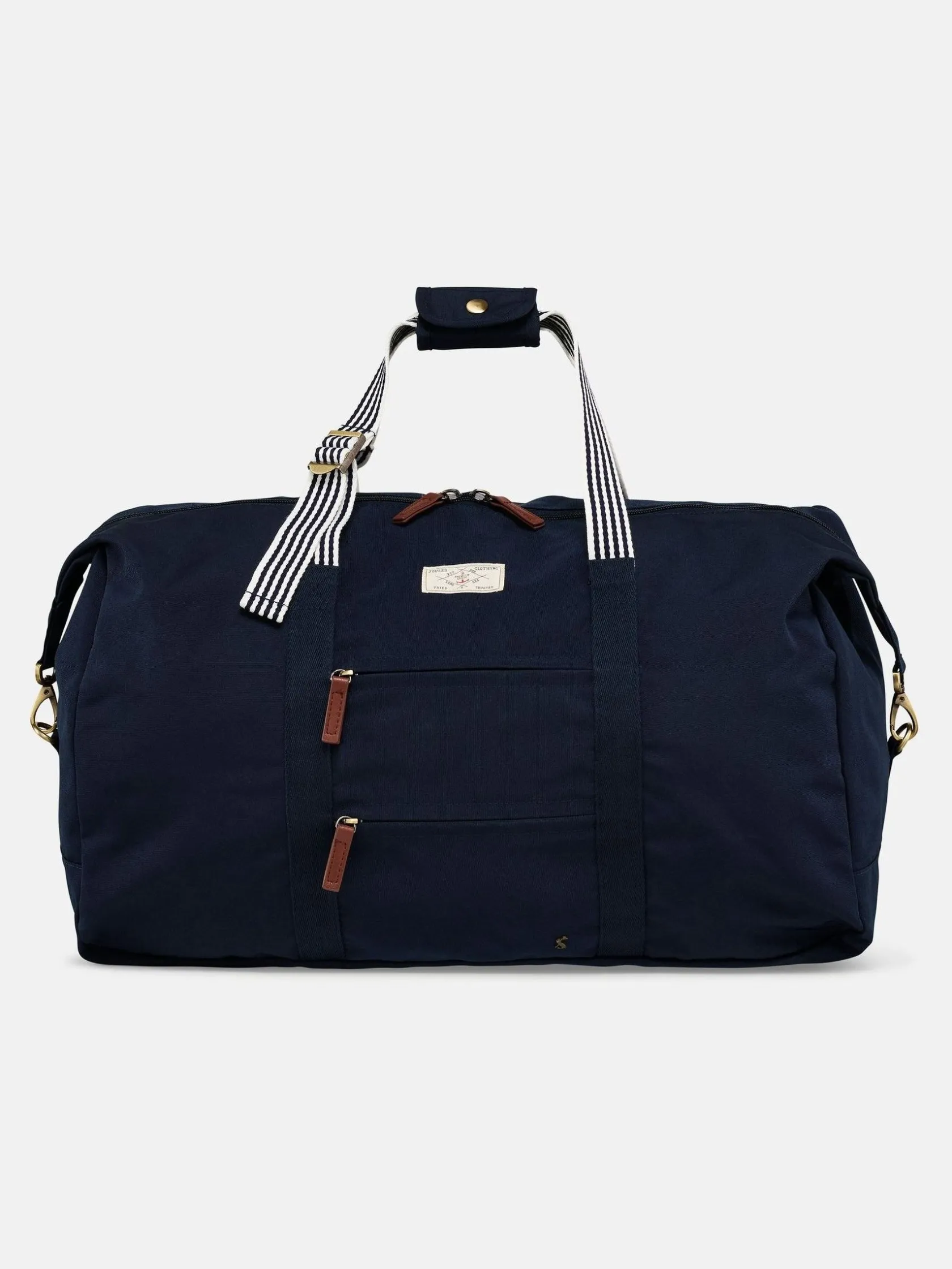 Made for getaways and holidays each and every item from the Joules Travel collection is designed with the aim of making your journey just that little bit more straightforward. Durable, lightweight, identifiable luggage pieces with organised interiors.Inspired by the Joules best-loved Coast jacket, this duffle is an ideal travel companion that will prove its worth time and time again. nnSuper lightweightnTwo handy front zippered pocketsnAdjustable striped handles in contrast webbingnRemovable shoulder strap allows for alternativenWide opening main compartmentnSignature striped lining and internal organisation pocketsnTrigger clips on either sidenBrushed antique gold hardwarenSignature hare logo and stitched coast logo