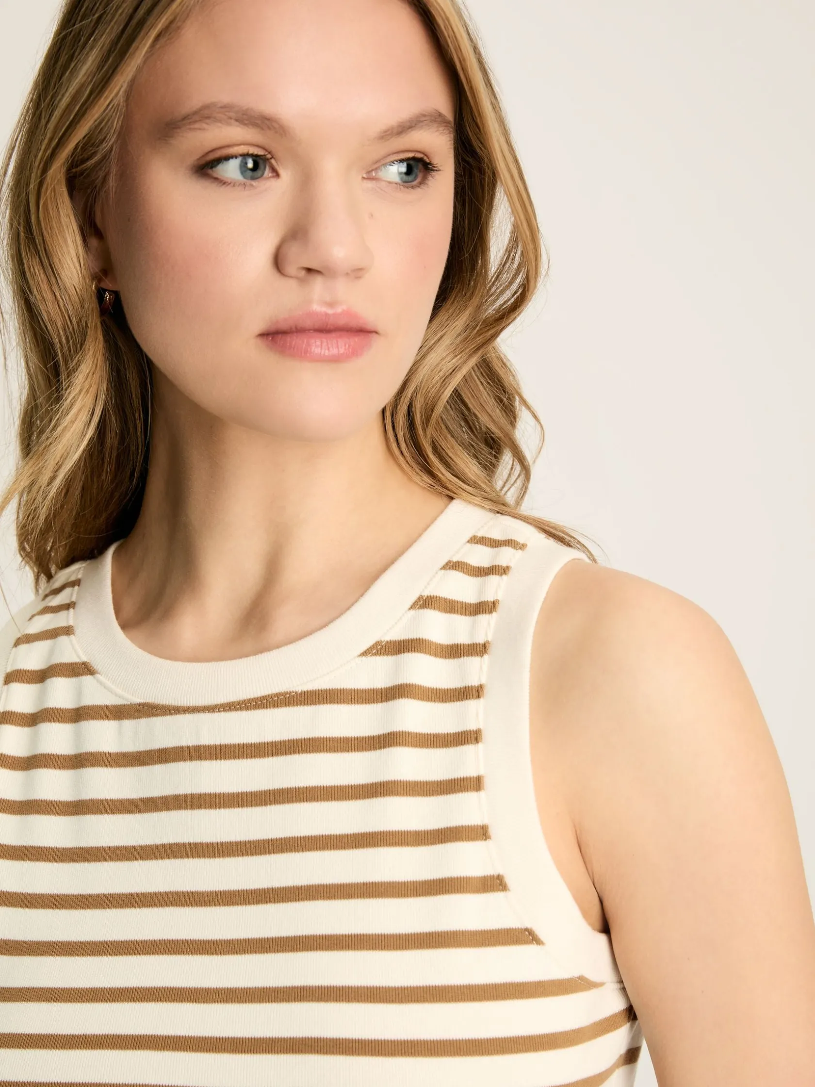 Sale Joules Harbour Cream & Tan Striped Jersey Vest Cream&TanStriped