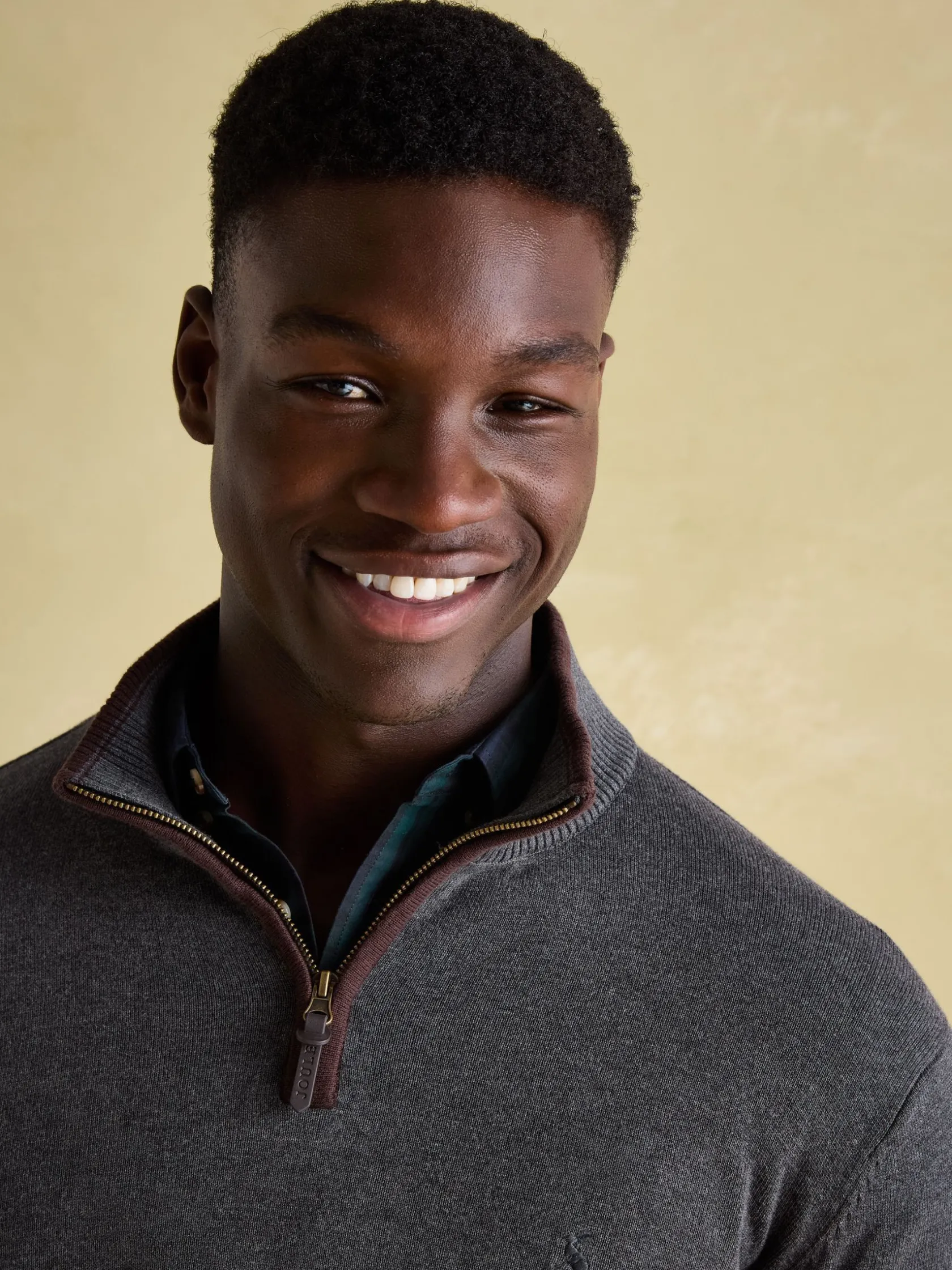 One of our best-loved men’s styles, this quarter zip jumper is crafted from soft yet substantial cotton and is comfy enough for layering and yet dapper enough to wear on its own. The contrast back-neck is ribbed, as are the hem and the cuffs. We recommend pulling it on over a shirt for ultimate style, warmth and comfort. Perfect for those smart-casual occasions that can be tricky to dress for. 100% cotton. Classic fit. Funnel neck with quarter zip fastening. Faux leather zip pull. Ribbed hem, neck and cuffs. Contrast back neck tape