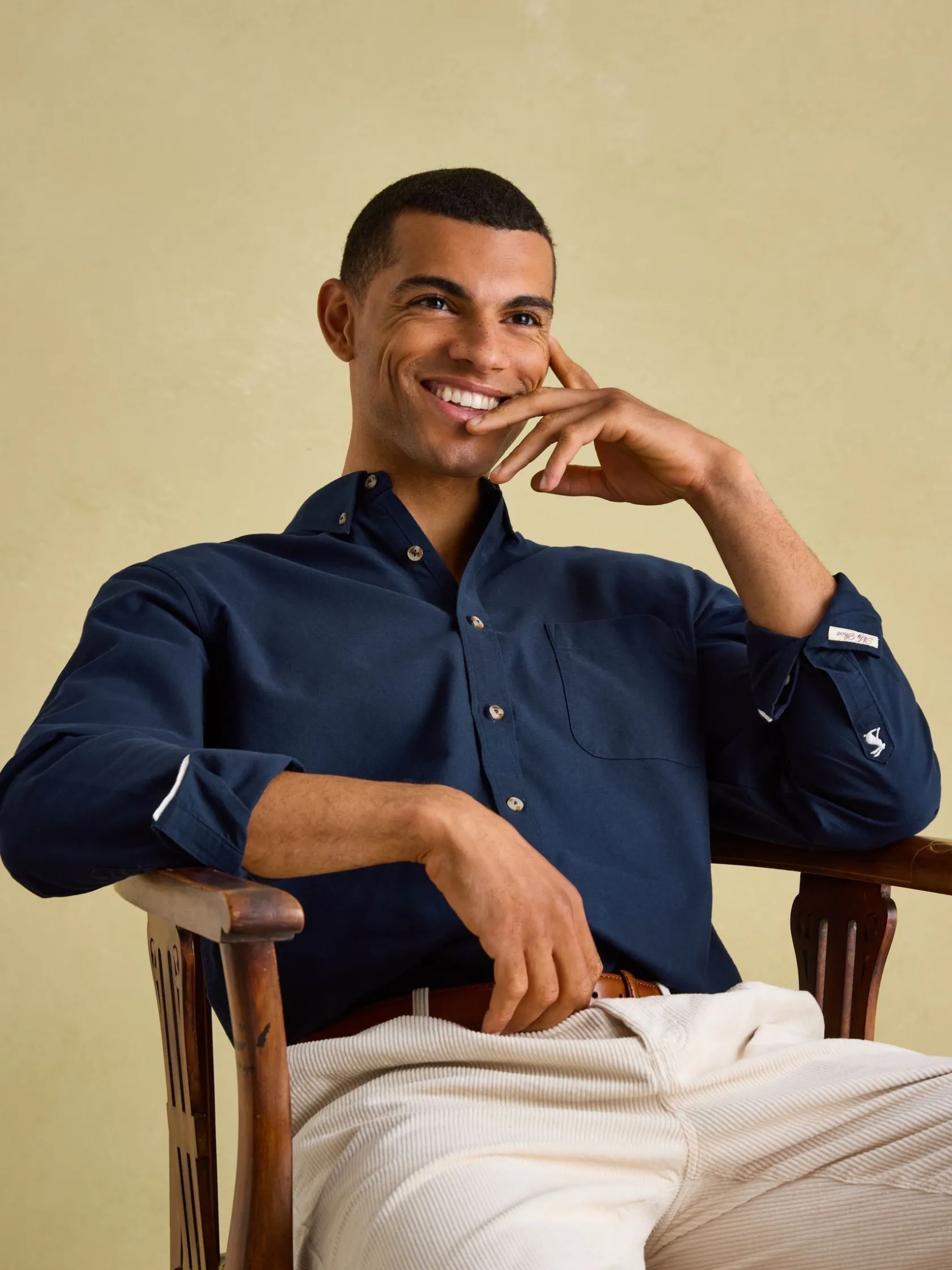 This shirt is a classic that every man should have in his wardrobe. Built from soft yet sturdy cotton and with enough shape and structure to help you feel as dapper as it looks. Button it up or wear it open with a t-shirt. The choice is yours. The contrast trims add detail where it’s least expected and are a constant reminder of the quality. Cotton. Classic fit. Full button fastening. Button down collar. Chest pocket. Contrast trims. Button cuffs with contrast stitching. Back hanging loop detail. Joules hare embroidery to the cuff.