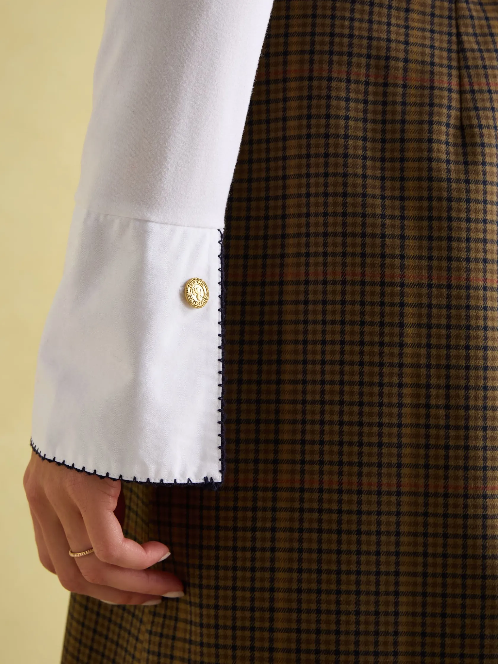 Crafted from a lightweight and easy-to-wear fabric, this top is adorned with an equestrian-inspired repeat geo-pattern, an elegant scallop-stitch collar and exaggerated cuffs. Elegant on its own and perfect underneath a knitted tank, it’s a perfect blend of style and practicality. A great piece to have close by to easy elevate your off-duty wardrobe.nnLightweightnButton scallop stitch collarnExaggerated cuffs with button detail