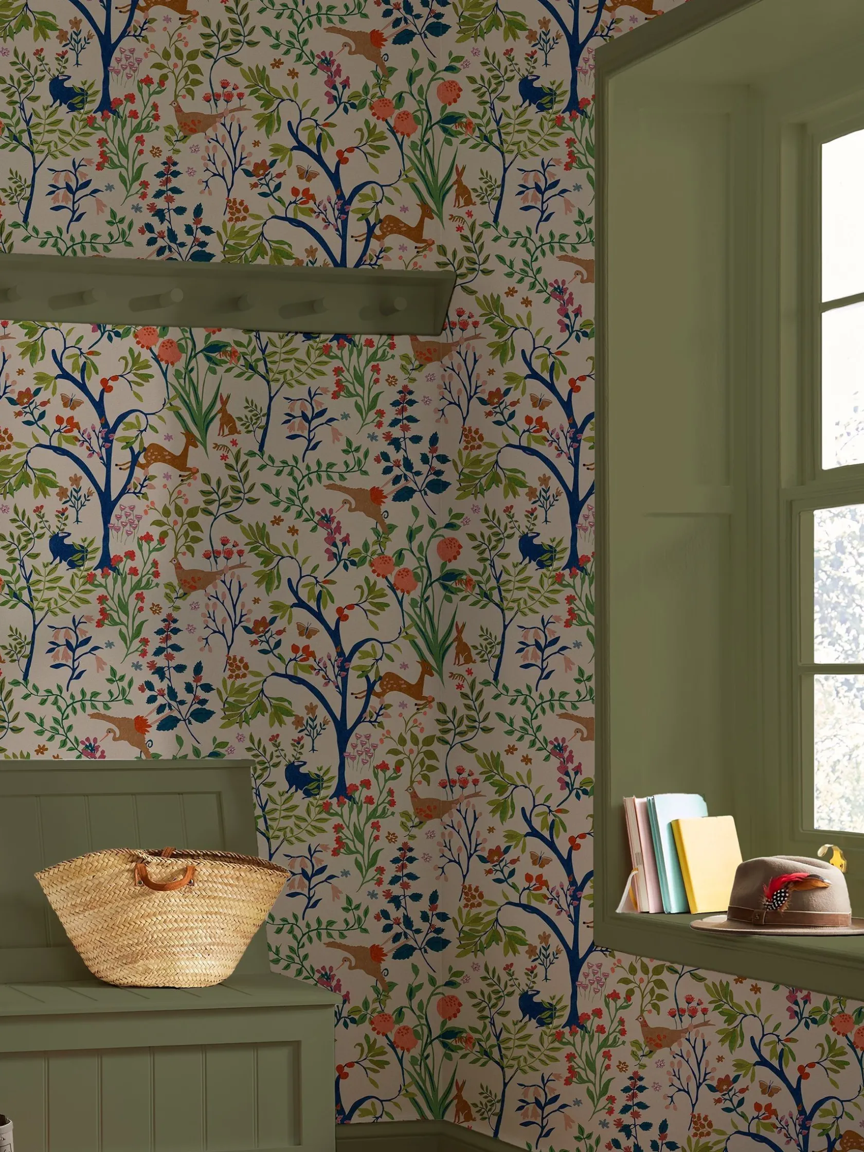 Bring a classic heritage look to your home and showcase the nature captured within this enchanting design. Perfect for bringing the outside in by combining sprigs, flowers and trees with many woodland creatures. Printed on a matt substrate for a contemporary look and feel. This wallpaper is also paste-the-wall, making it easy to hang.