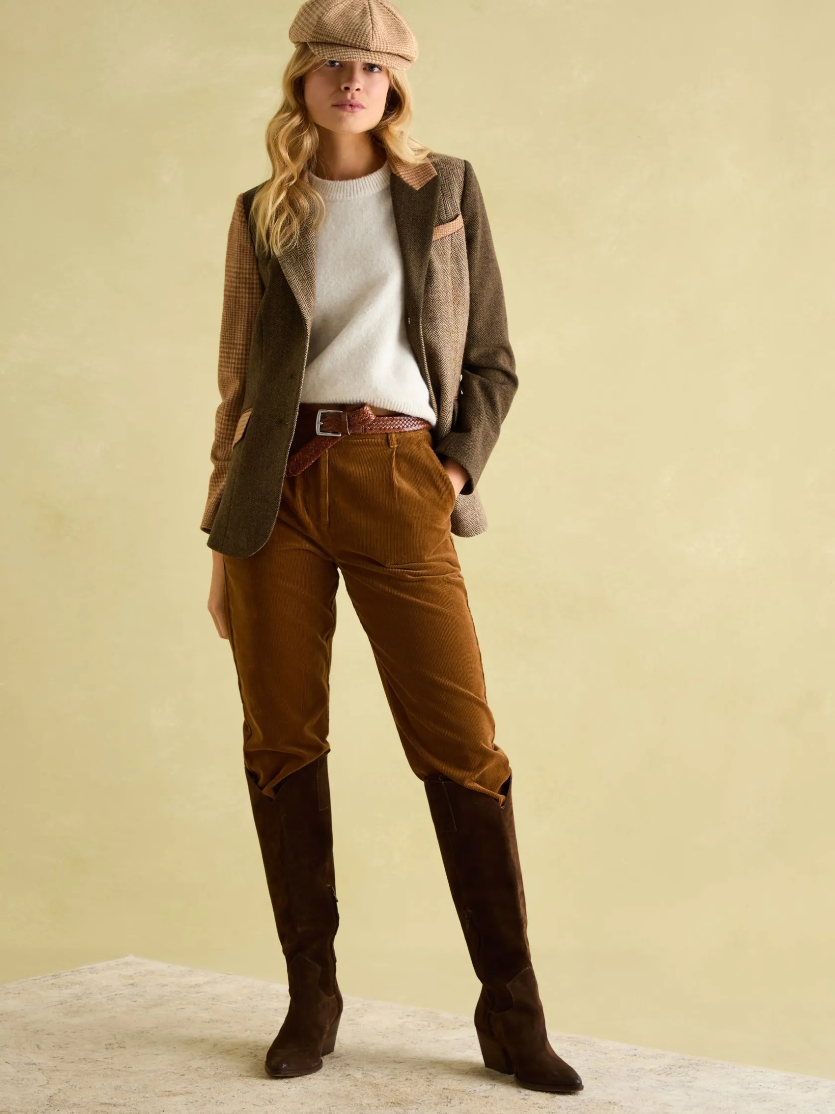 Carefully crafted with a wool-blend tweed, this baker boy hat is a celebration of classic countryside style. The lining inside features a hand-drawn print, it has a generous shape and curved peak (with hidden popper) that showcase classic and traditional style. Wear it with another piece of tweed, or elevate a chunky knit with this love-forever accessory.nnBaker boy hatnWool-blendnHidden popper to peaknHand-drawn print inside